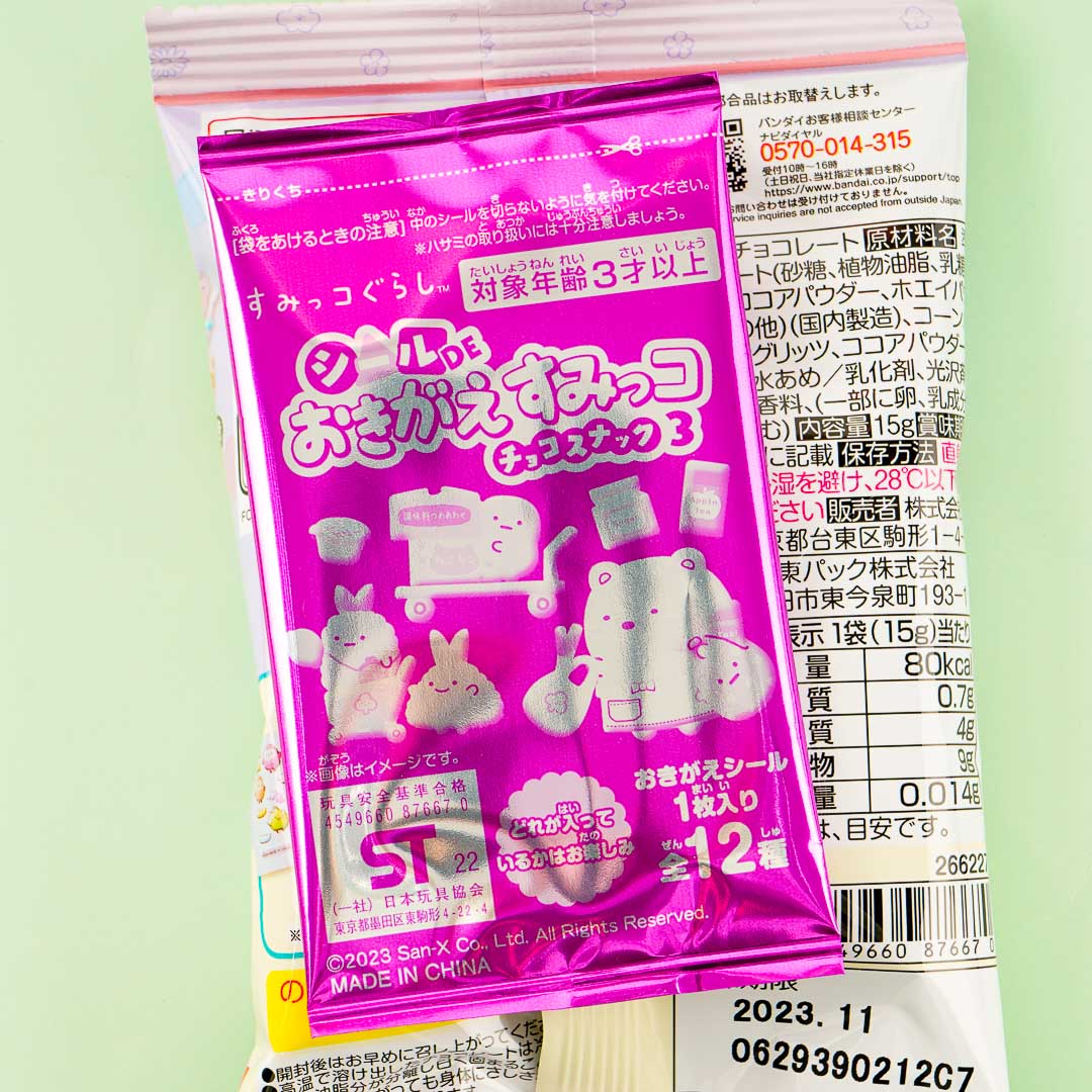 Take a quick break as you munch on these yummy chocolate-flavored corn snacks! These delicious treats come with a free Sumikko Gurashi character sticker sheet.