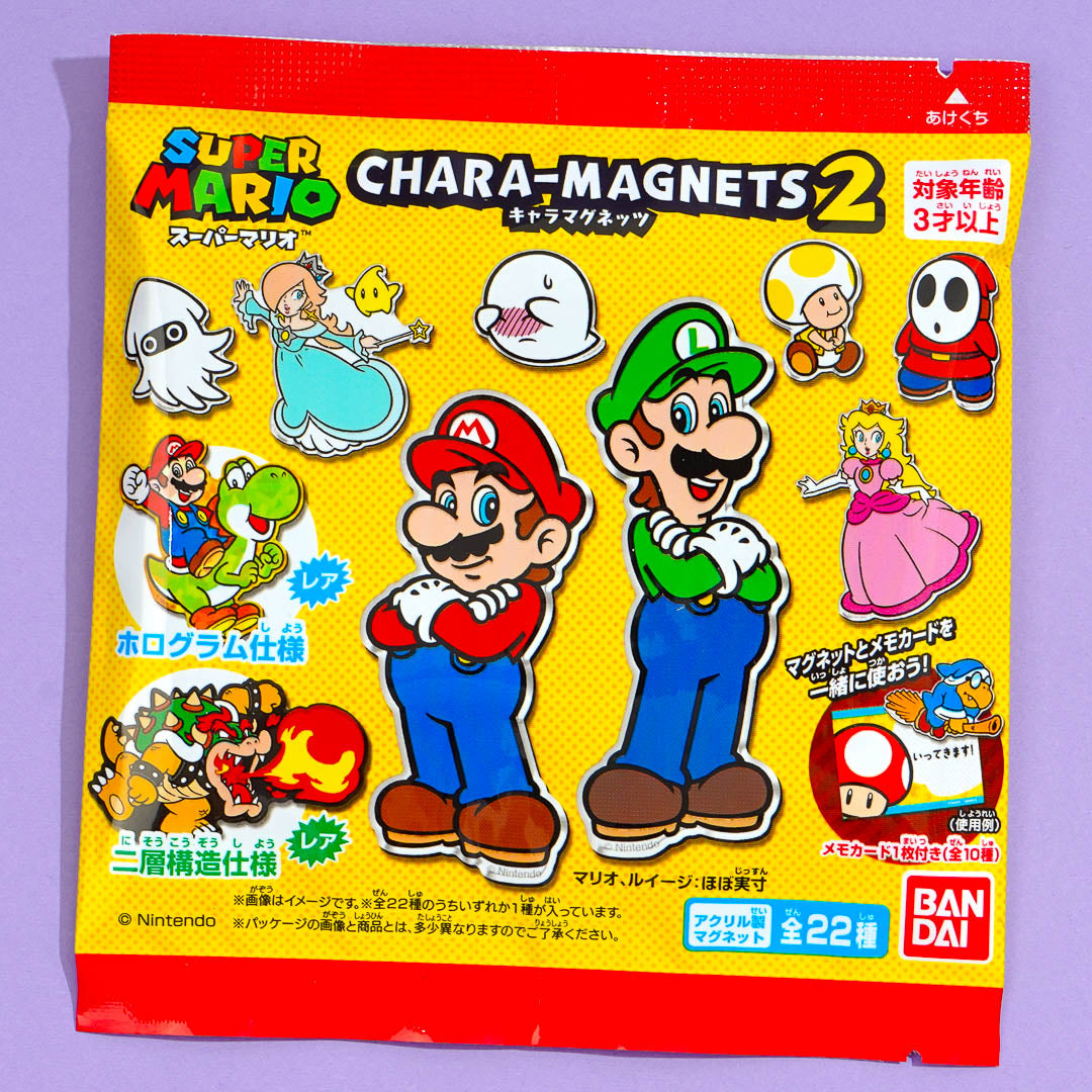Deck out your gaming station with this super kawaii pack of Super Mario collectibles. It includes a cute Super Mario character acrylic magnet and a memo card. Surprise yourself with a random magnet from a set of 22 designs. You'll also get a random memo card from a set of 10 designs.