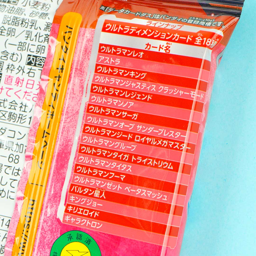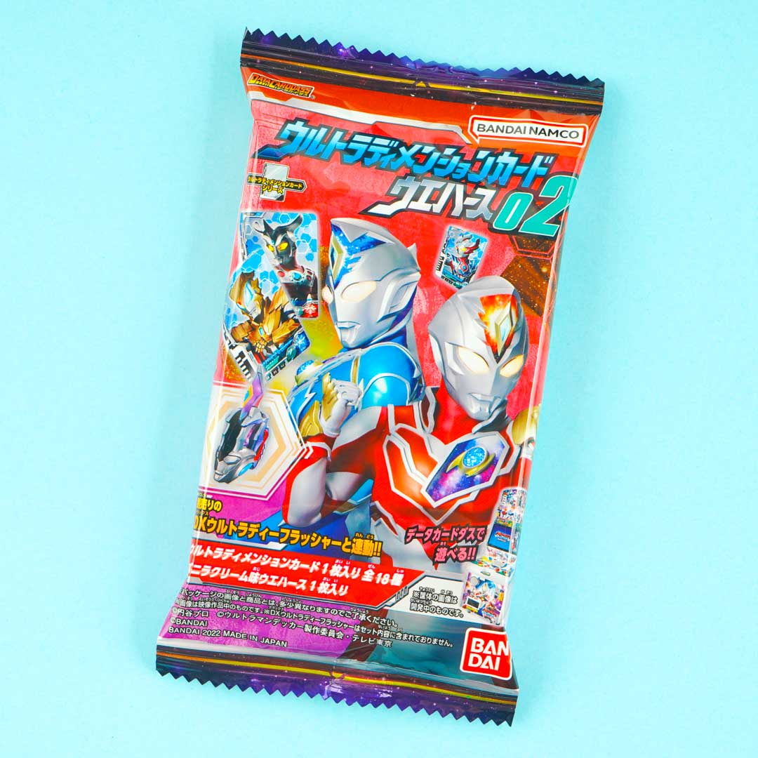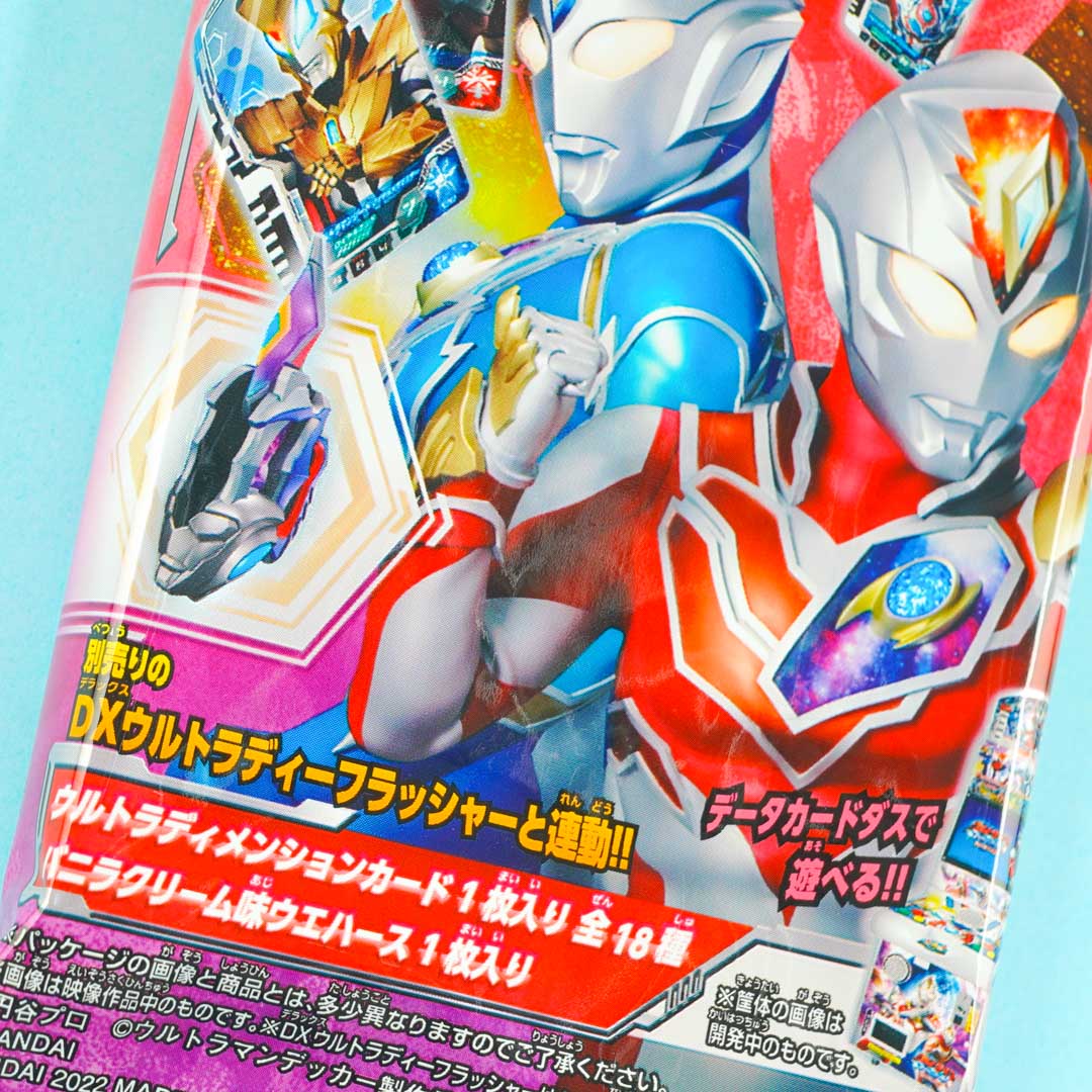 Munch on this delicious vanilla cream-flavored wafer. It comes in a package showcasing Ultraman characters! This wafer also comes with a collectible holographic Ultraman character card. Try to collect all the cards in the series!