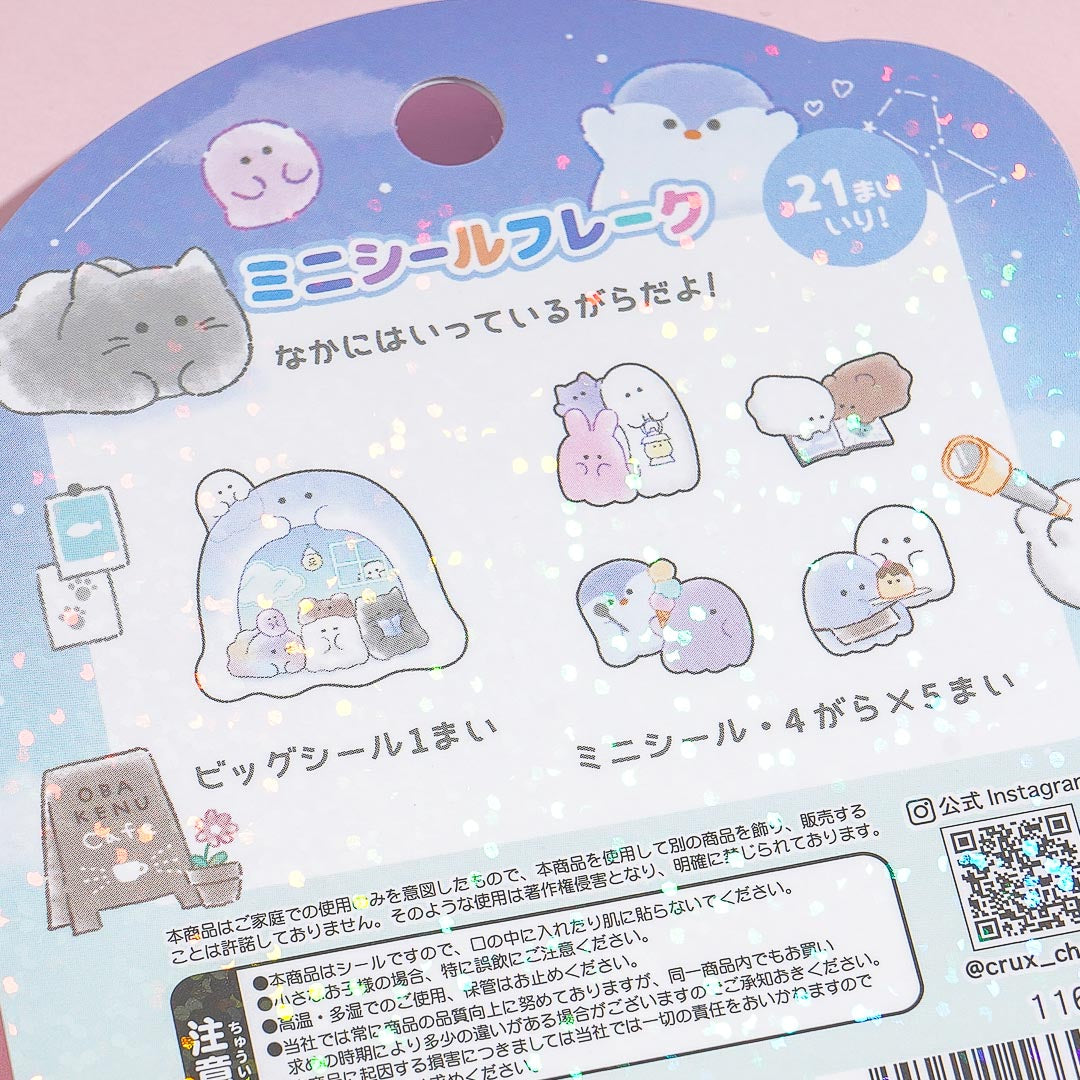 This glittery pack of mini sticker flakes showcases the Obakenu ghosts hanging out with each other. Use them to add a major dose of cuteness to your journal cover!