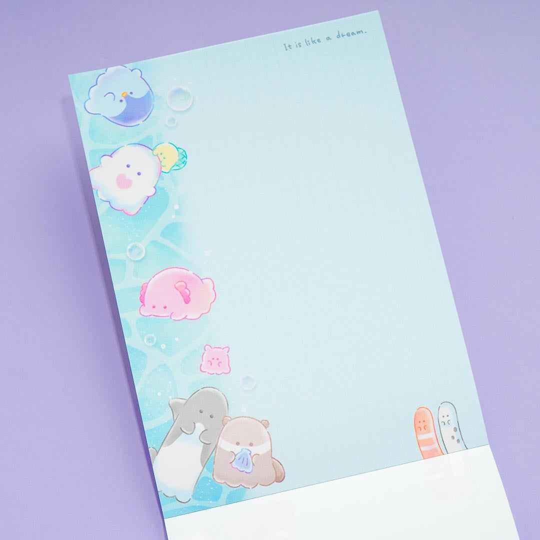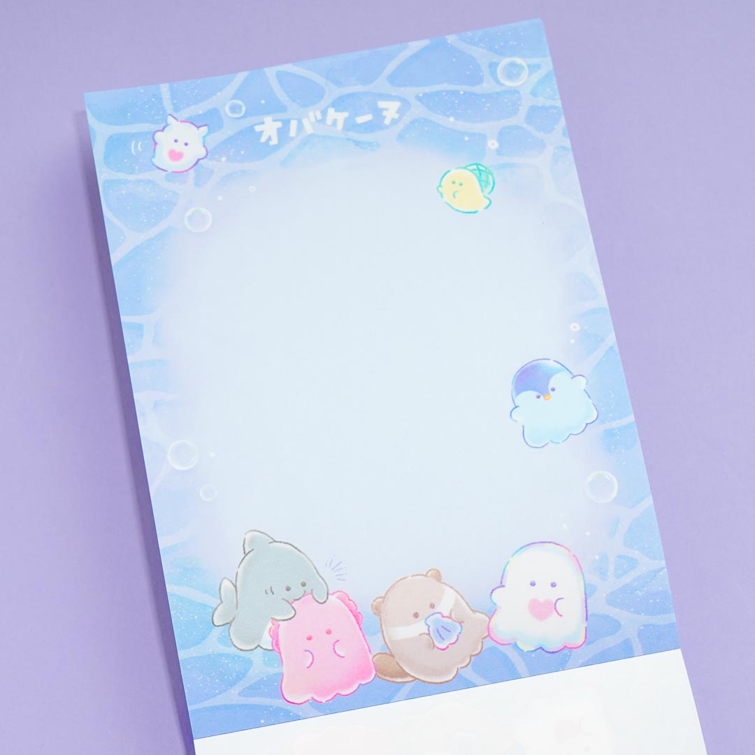 Have fun exchanging short notes with your friends by using this kawaii memo pad! Its front part has die-cut sheets, while the back has normal ones. These all feature super cute prints of funny-looking sea creature ghosts from the group Obakenu!