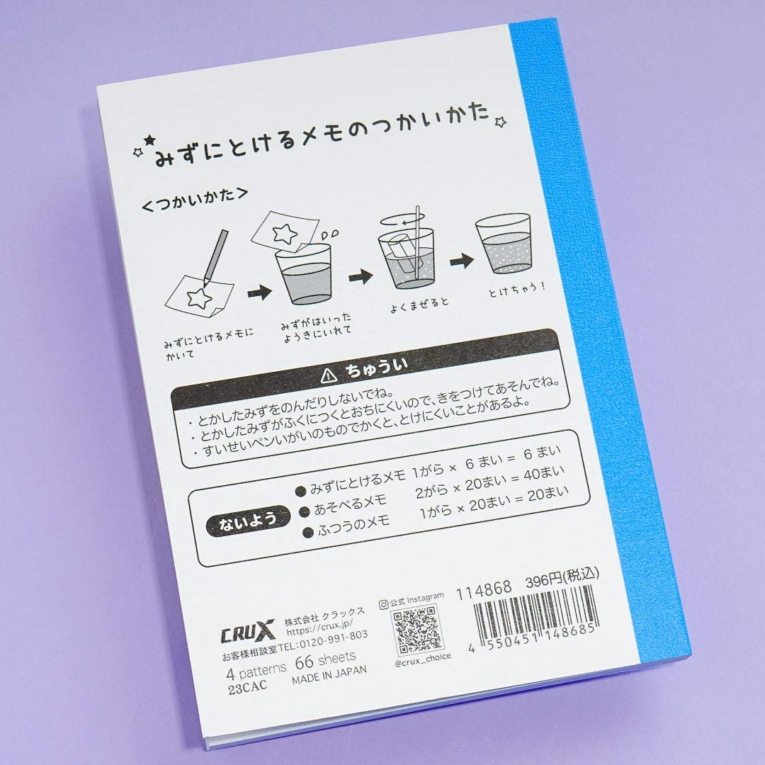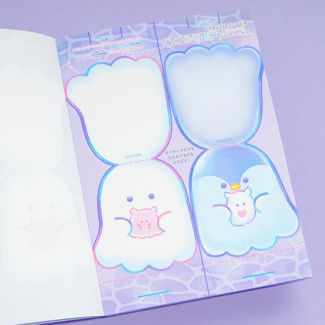 Hide all your secrets with these kawaii melting memos! They feature kawaii prints of the Obakenu ghosts. Just put them in the water and watch the paper disappear like a ghost!