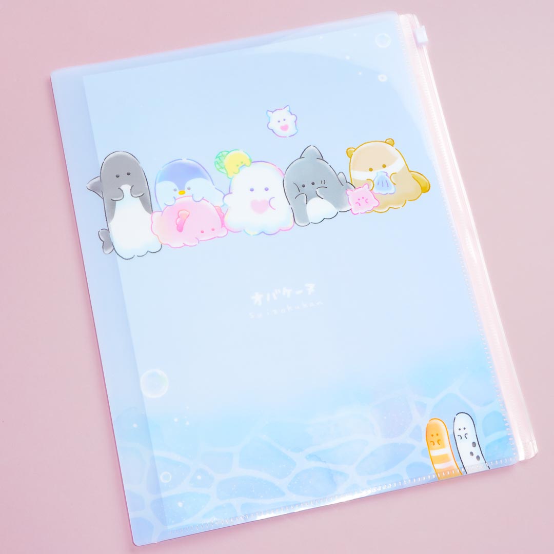 Compile your homework in this kawaii clear file folder! It features an illustration of the Obakenu ghosts in a line. The pockets come with zippers so it's easy to add and take out papers.