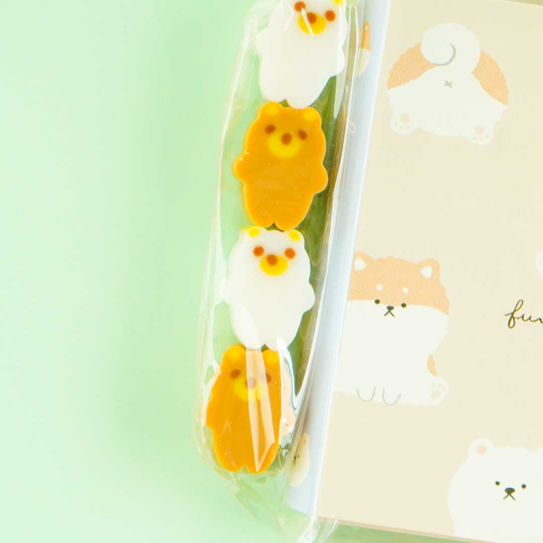 Have fun writing short sweet notes using this kawaii memo pad set! It includes a memo pad booklet cover decorated with prints of cute Shiba dogs and four memo pads. The set also comes with four bear-shaped tiny erasers!