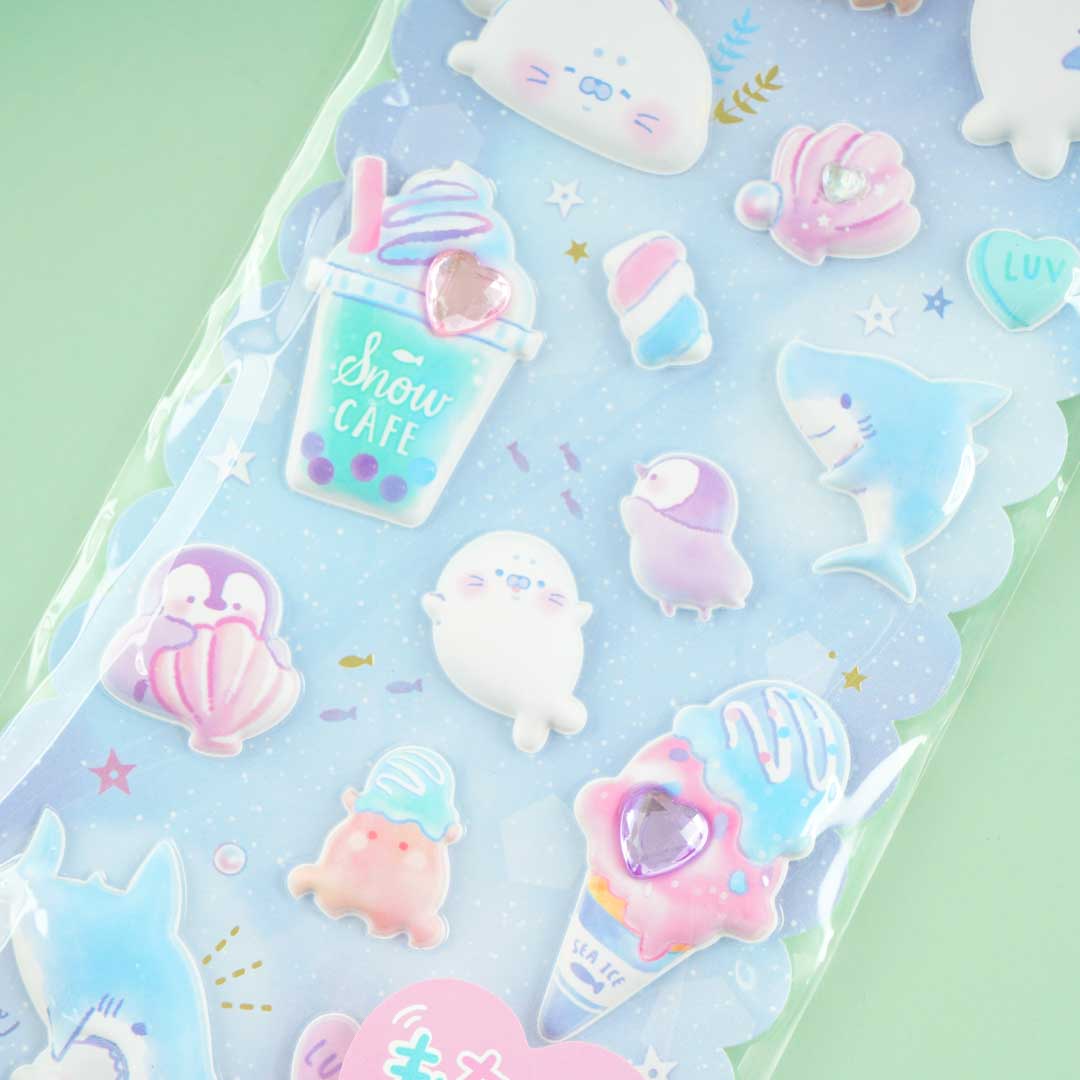 This kawaii sheet features die-cut illustrations of the sea animals playing! Use these puffy stickers to add a dose of cuteness to your plain photo albums.