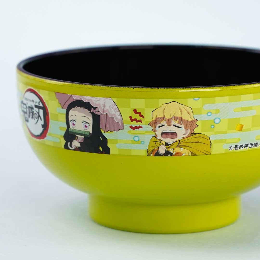• A kawaii bowl decorated with prints of chibi Demon Slayer characters