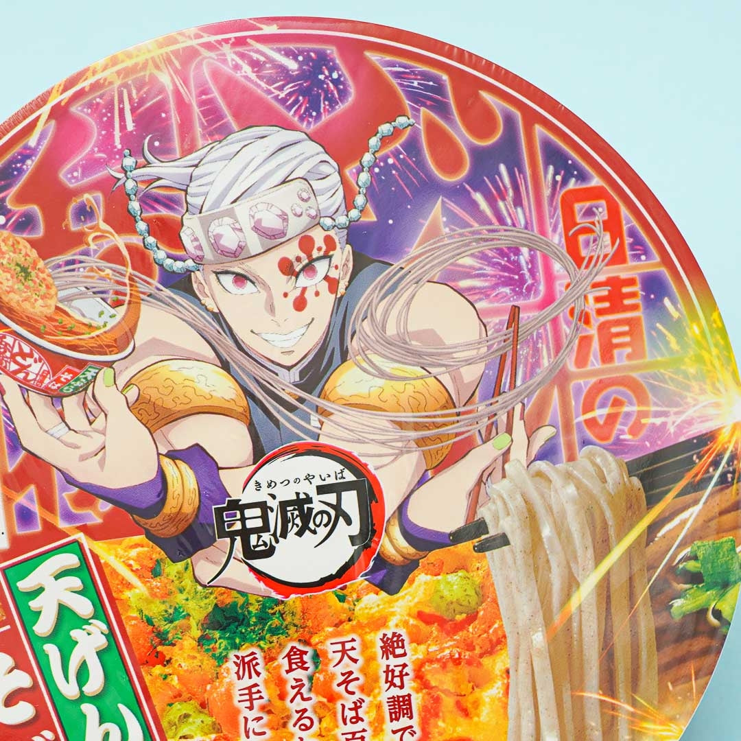 Enjoy a bowl of tempura soba with crunchy tempura topping in minutes with this instant bowl! It comes with two types of bonito stock making the soup a deep and rich flavor. Simply add water and wait for three minutes before you dig in! The packaging features Tengen Uzui — one of the popular characters from the famous animé, “Demon Slayer: Kimetsu No Yaiba.”