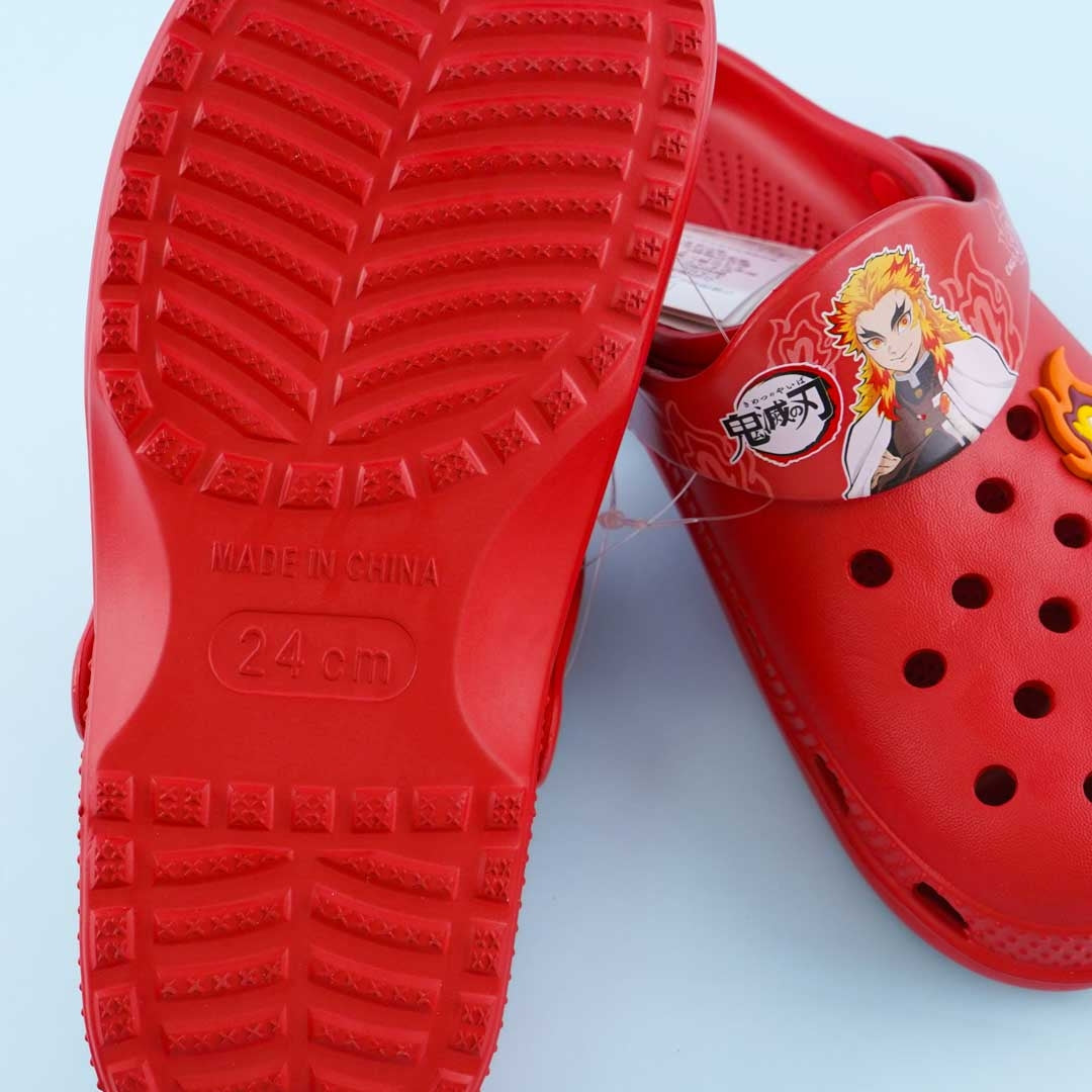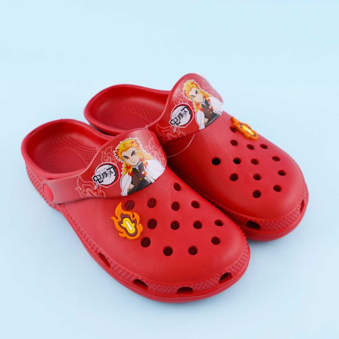 This pair of red slippers are made of EVA or synthetic and comes decorated with illustrations of Kyojuro Rengoku from the famous action animé “Demon Slayer: Kimetsu No Yaiba!” Have fun wearing these comfy slip-ons indoors.