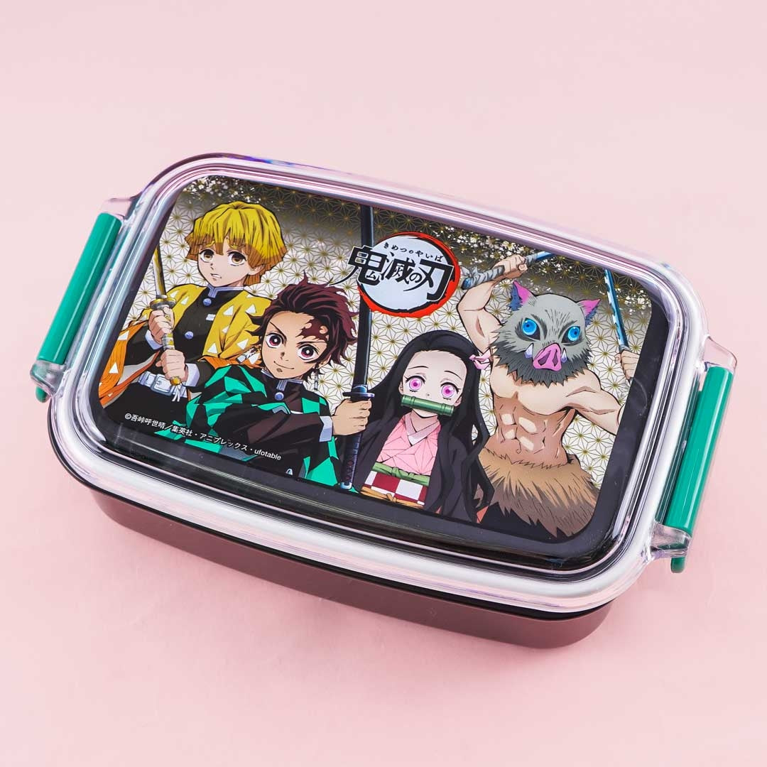 • A kawaii bento box illustrated with characters from the popular anime Demon Slayer