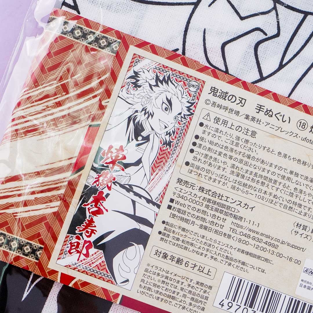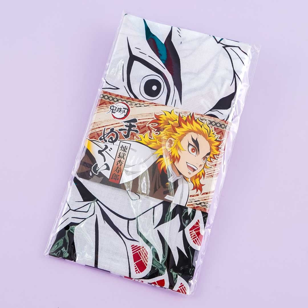 • A cute hand towel featuring a print of Kyojuro Rengoku from Demon Slayer