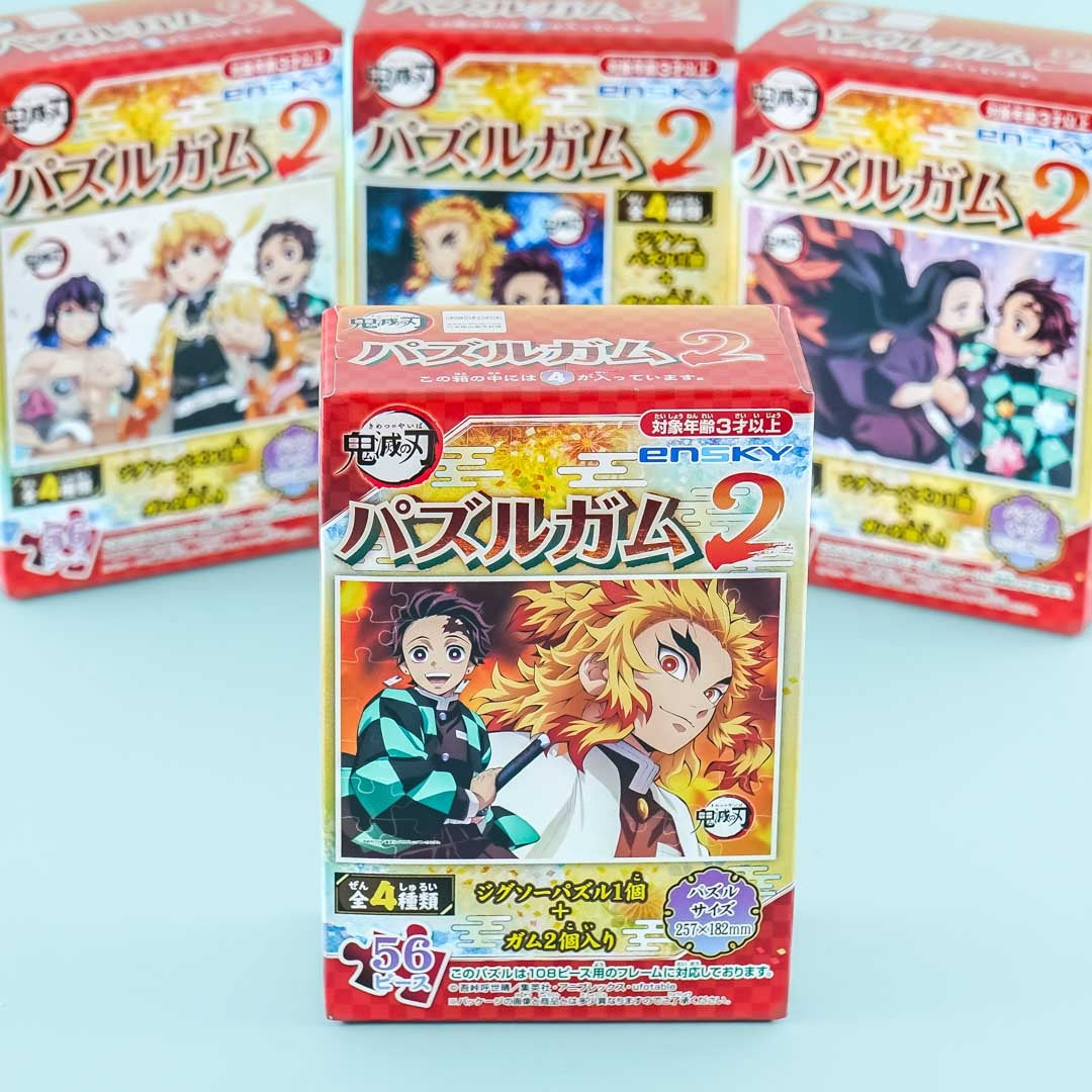 Have fun with this puzzle set featuring prints of Demon Slayer characters! It has 56 puzzle pieces for you to place together. This set also comes with two pieces of strawberry-flavored gum. Surprise yourself with a random puzzle design when you order!