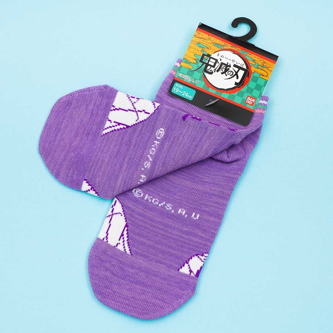 Complete your outfit of the day with this pair of sneaker-length socks featuring Shinobu Kocho from Demon Slayer: Kimetsu no Yaiba anime series. They're made of soft fluffy material.