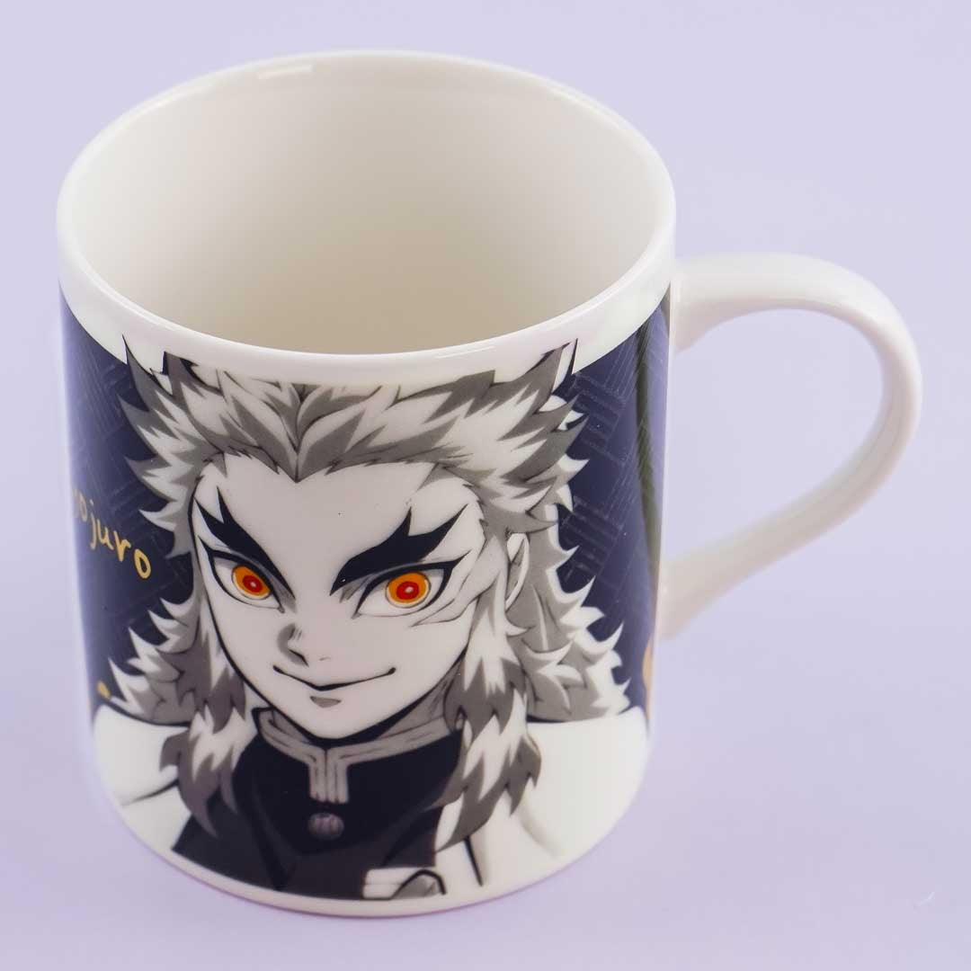 • A cute mug featuring monochrome print of Kyojuro from Demon Slayer: Kimetsu no Yaiba