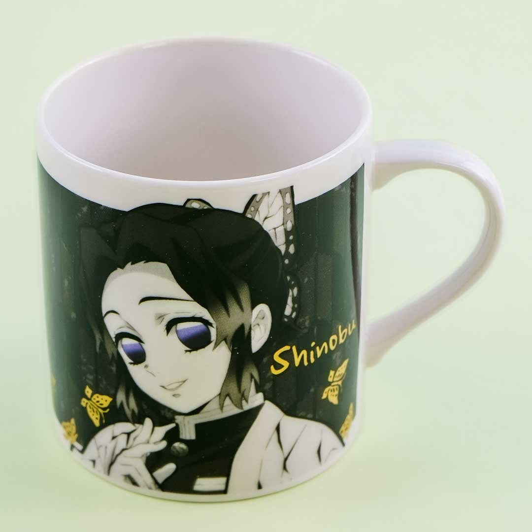 This kawaii mug is perfect to use for your afternoon tea! It is illustrated with a monochrome print of Shinobu from the popular Japanese manga series, Demon Slayer! It is made of porcelain material and is safe to use in dishwashers, dryers, and microwaves.