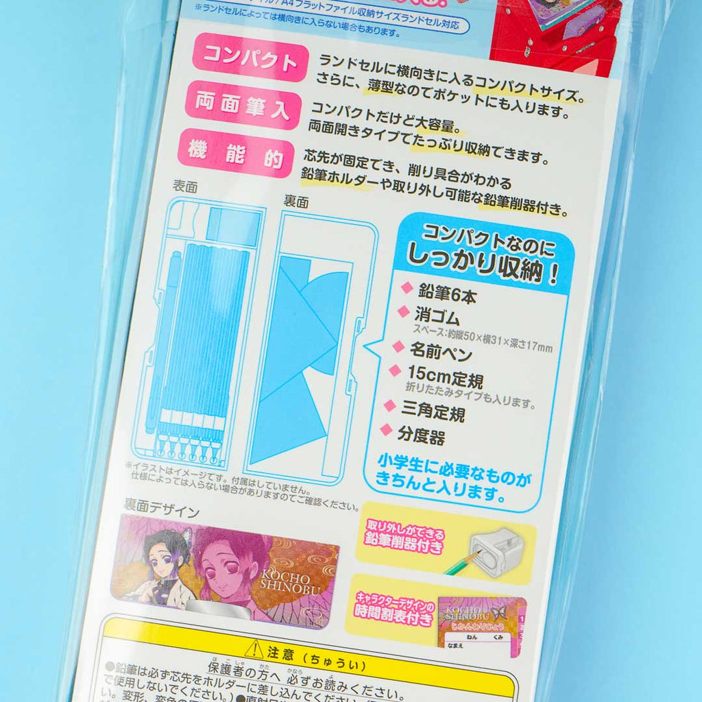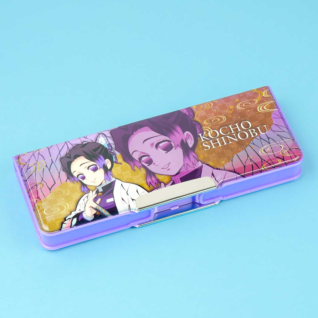 This kawaii pencil case has a cute and soft Demon Slayer cover featuring Shinobu Kocho. It's a double-sided case that's perfect for storing and organizing your writing materials!