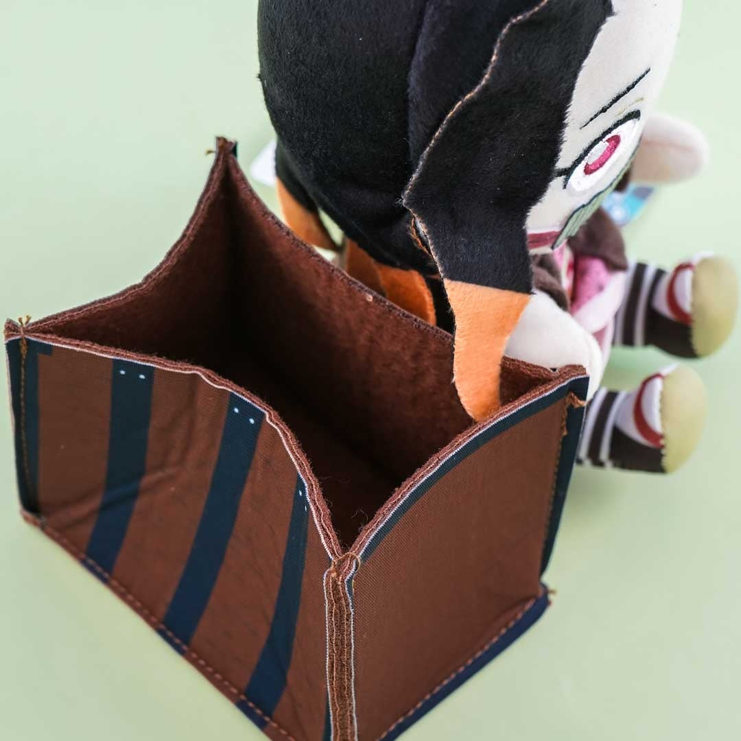 Add this medium-sized Nezuko Kamado sitting plushie to your collection! This popular Demon Slayer character plush toy is made of soft polyester and comes with an attached box-like holder at its back where you can place small knickknacks like keys and loose change.
