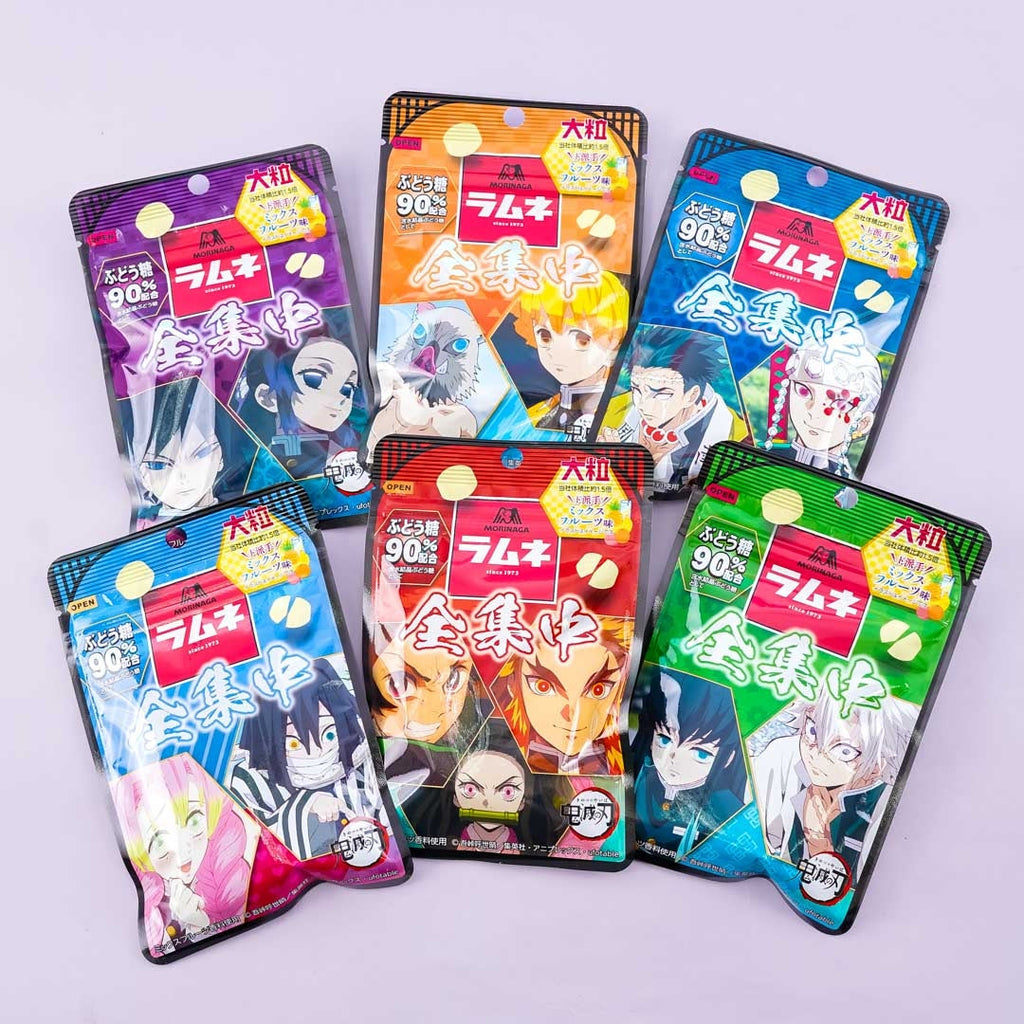 Take a quick break and enjoy these chewy treats with a refreshing tropical fruit flavor! Each large-sized ramune contains 90% grape sugar and comes in a resealable packaging featuring prints of Kimetsu no Yaiba characters. You'll receive a random package design when you order.