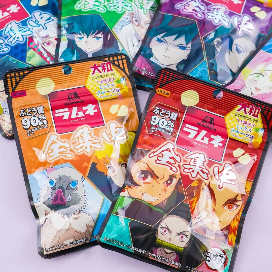 A resealable of ramune candies with illustrations of Demon Slayer characters
