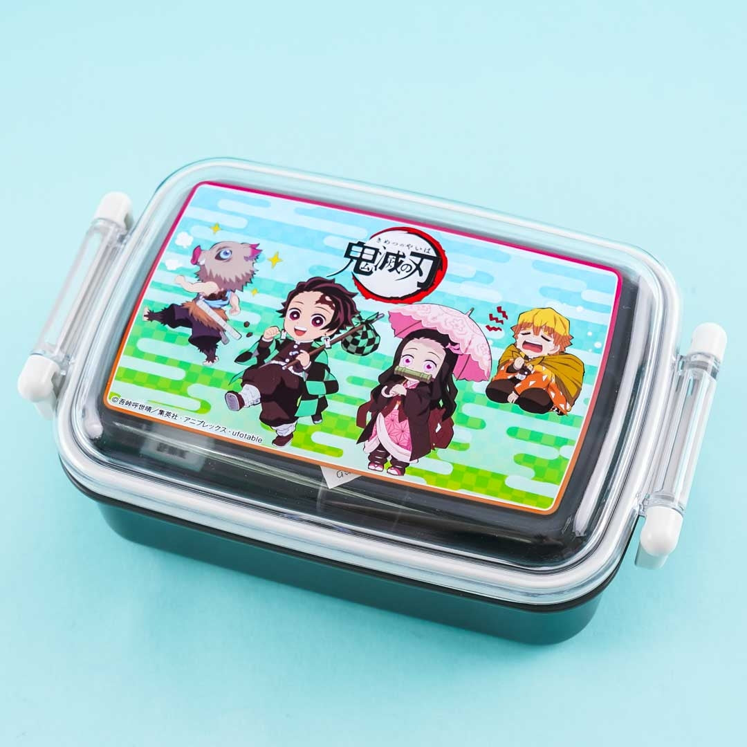 A cute rectangular lunchbox featuring Tanjiro, Inosuke, Zenitsu, and Nezuko from Demon Slayer: Kimetsu No Yaiba