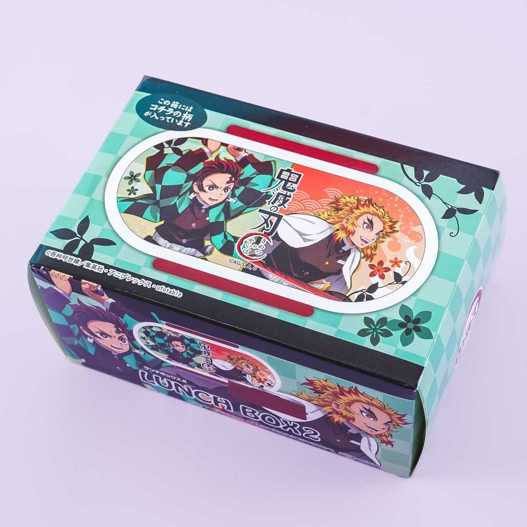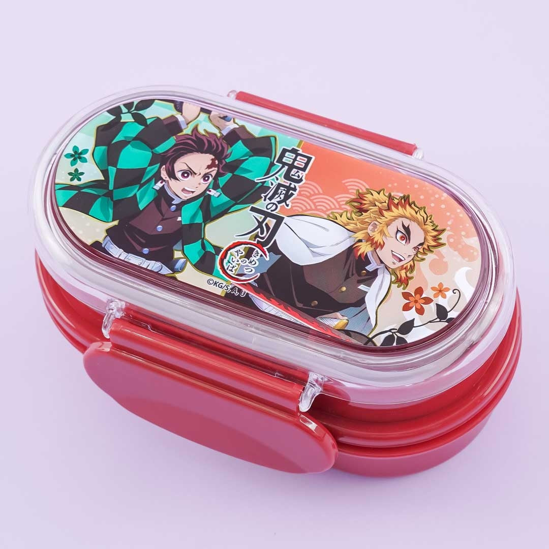 A super cute bento box featuring prints of Tanjiro and Kyojuro from Demon Slayer
