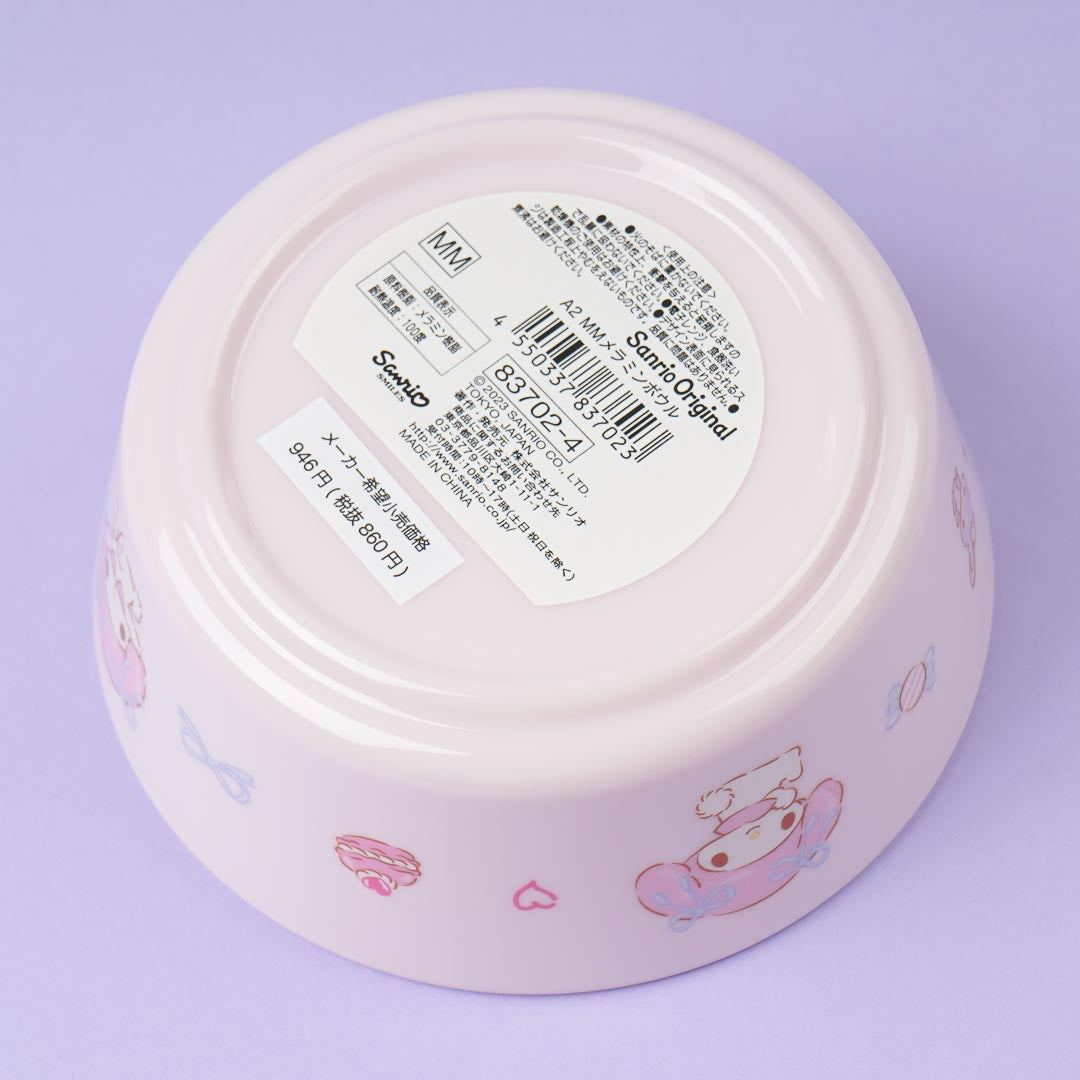 Enjoy eating your favorite cereal or porridge using this super cute melamine bowl with a flattened bottom! It has kawaii prints of My Melody and her favorite sweets like macarons and candies.