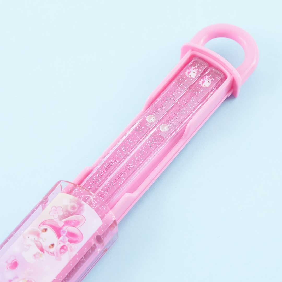 A cute pair of chopsticks with a case featuring prints of My Melody and flowers