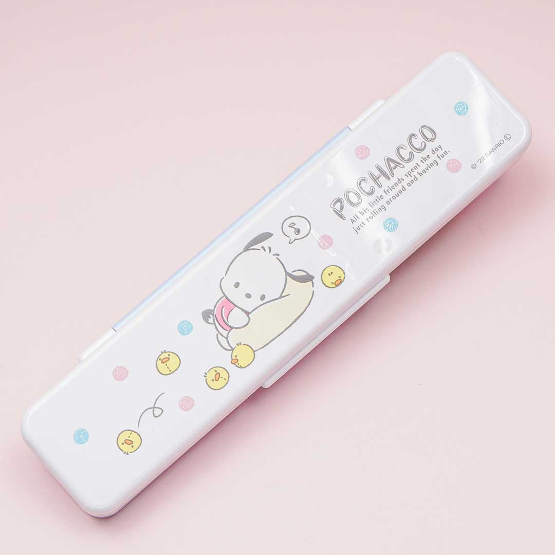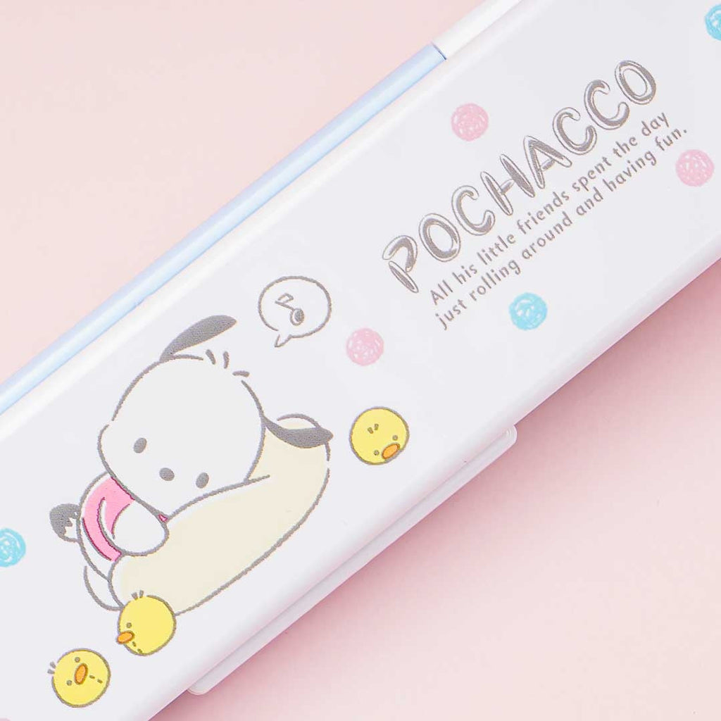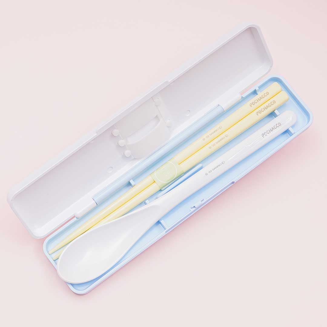 Use this super cute set of utensils to eat your meals. It features prints of Pochacco and his friends relaxing and having a good time! This utensil set comes with a pair of chopsticks, a spoon, and a carrying case. You can safely clean these utensils in the dishwasher after using them.