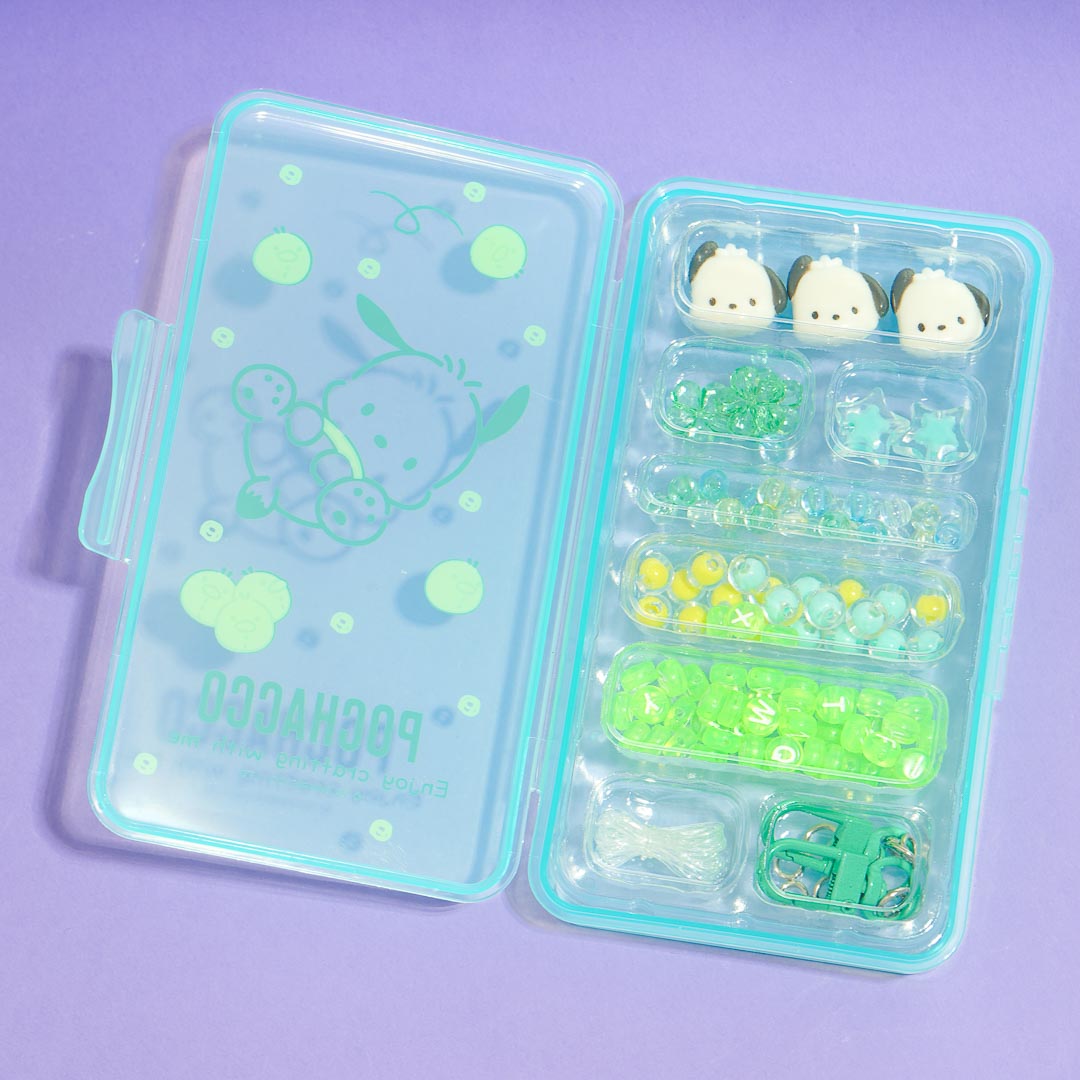 Create personalized beaded accessories using this Pochacco bead kit! The beads come in different shapes and sizes and are organized in a cute plastic case. You can use this to make bracelets or keychains.