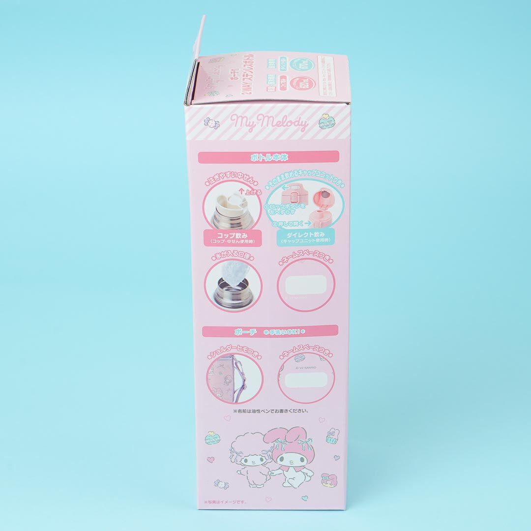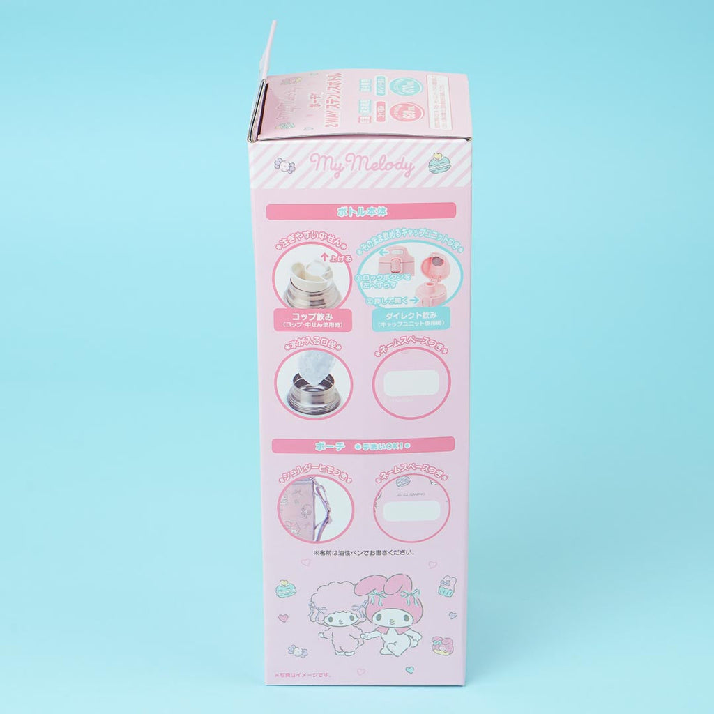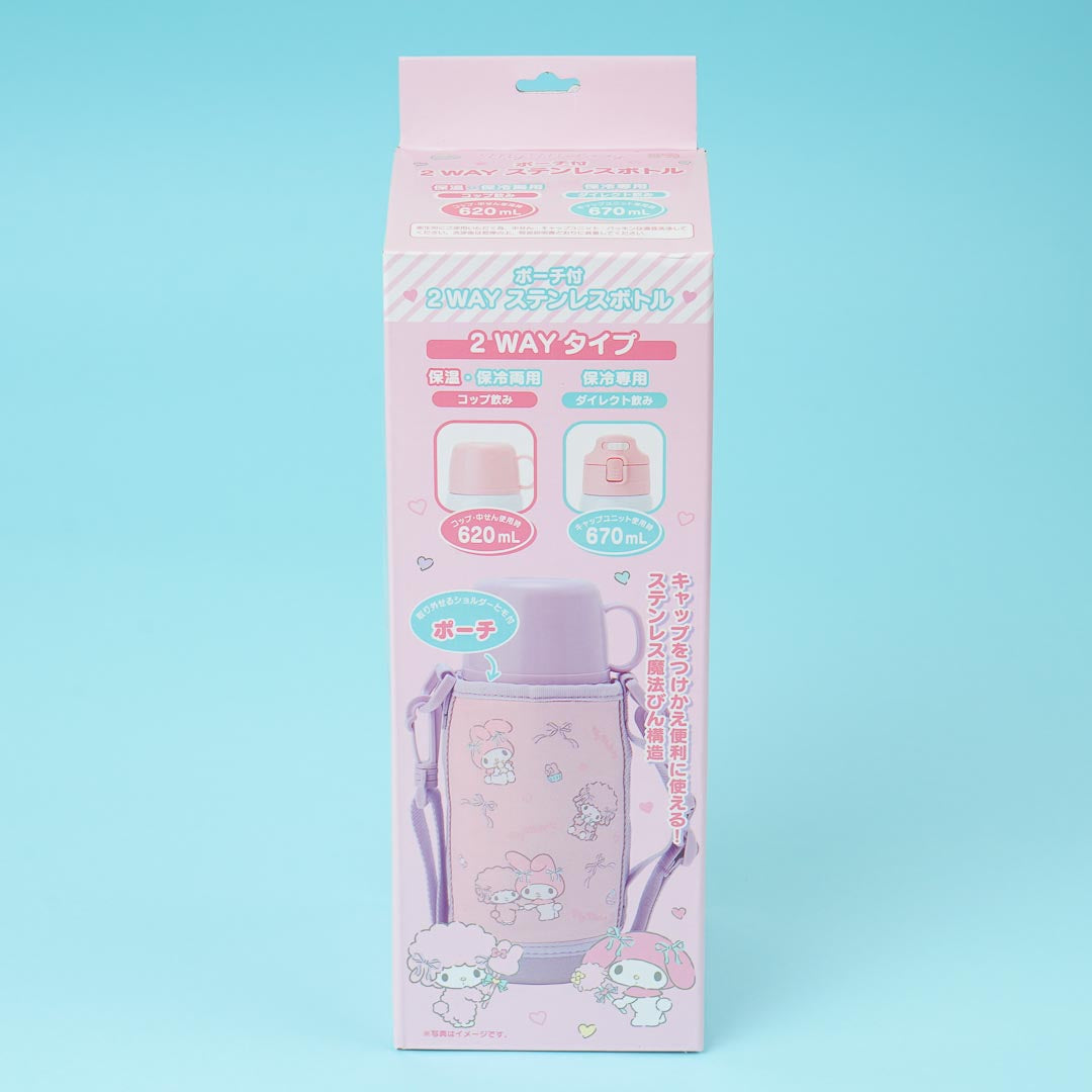 Stay hydrated with the help of this stainless steel bottle featuring cute My Melody and My Sweet Piano illustrations. It comes with two lids — one for direct drinking and one cup-style. The kawaii bottle also has a pouch with an adjustable strap so it's easy to carry.