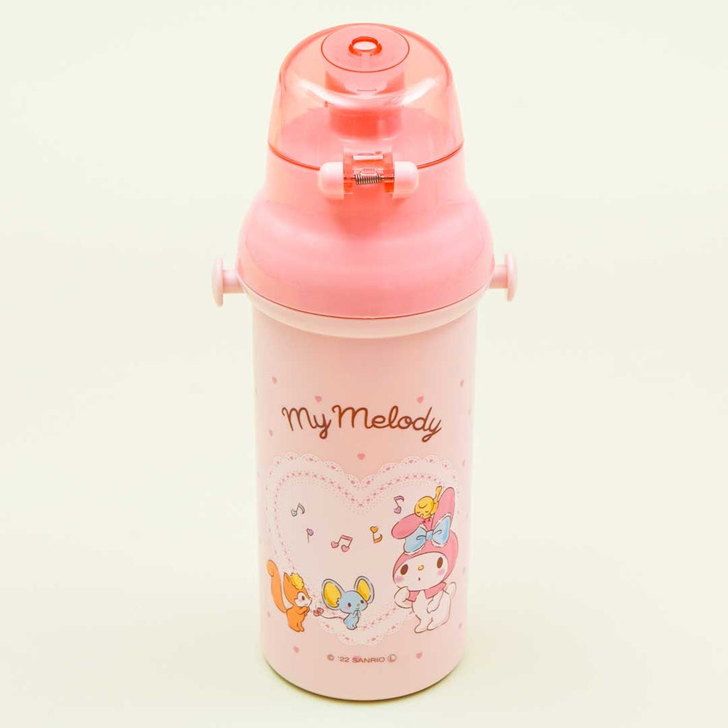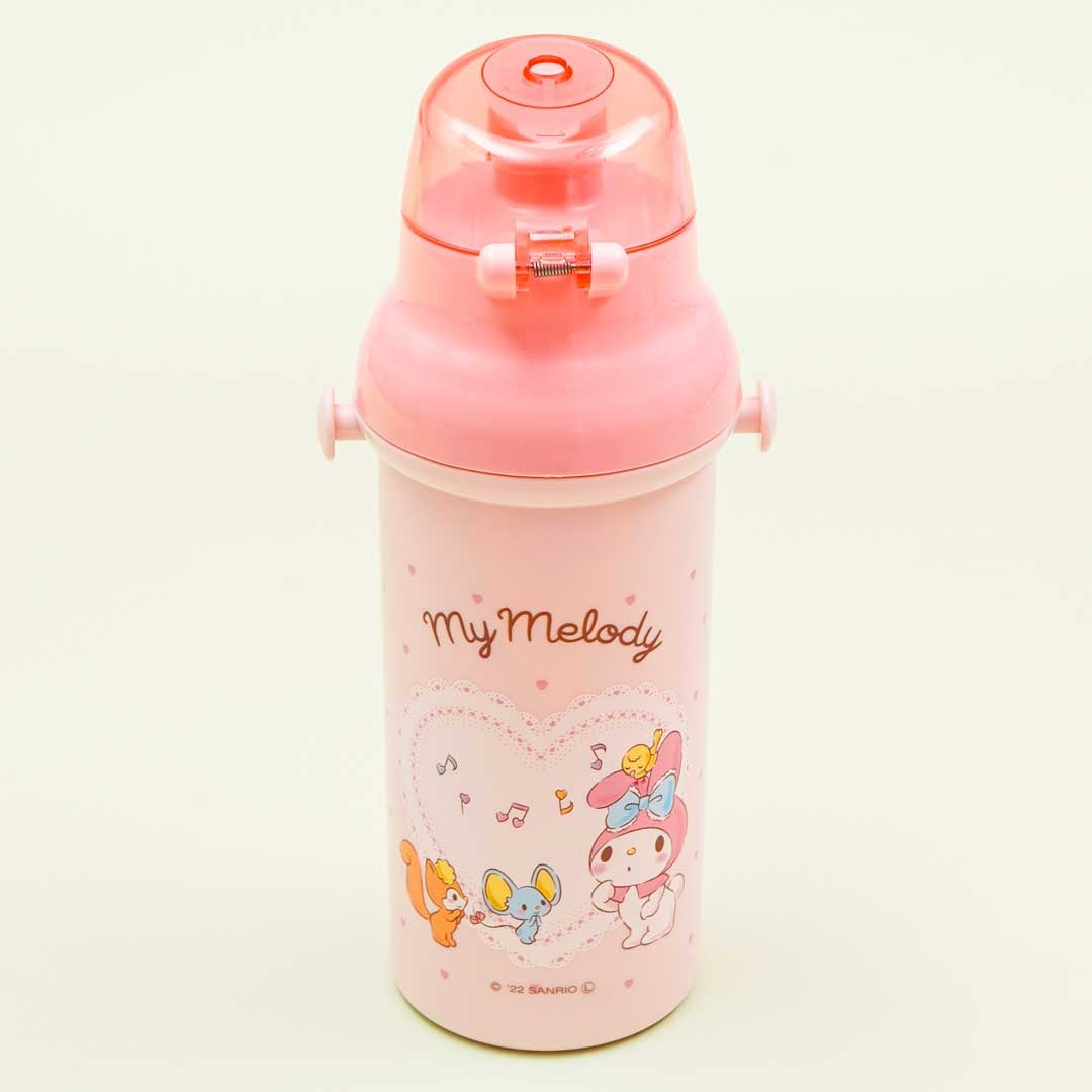 Stay hydrated by using this cute drinking bottle made of durable plastic, and comes with an adjustable strap! It has kawaii prints featuring My Melody playing the piano for her friends! Simply push the button to open it and directly drink from its spout. This water bottle contains silver ions that prevent bacterial growth and is dishwasher safe.