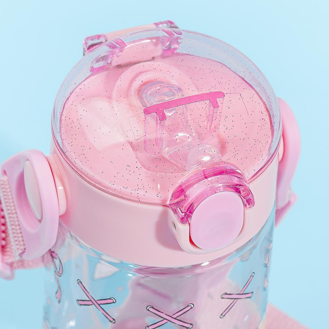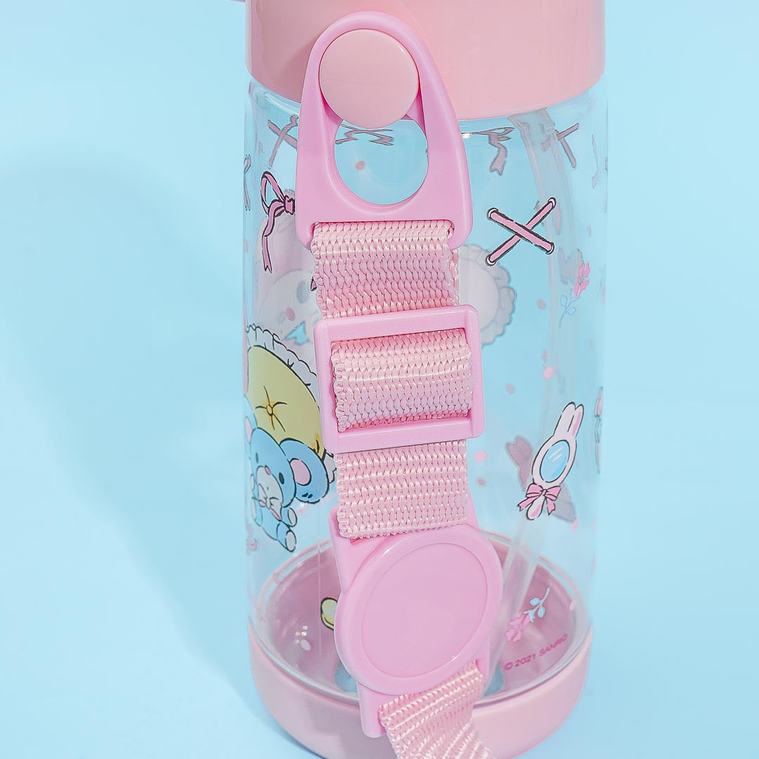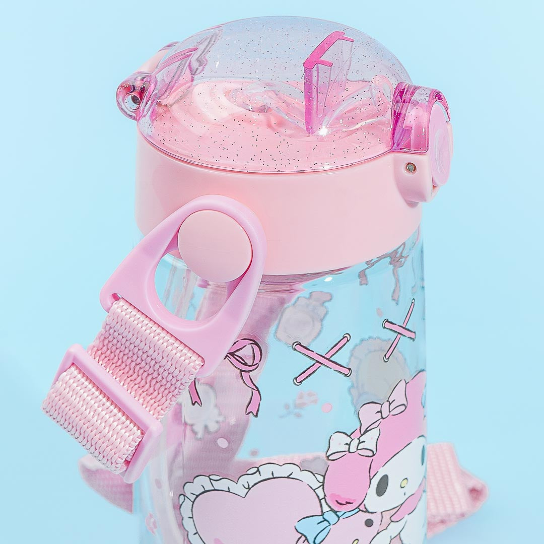Make sure you stay hydrated throughout the day by bringing this super cute transparent water bottle. It features a print of My Melody playing around with her friends! This lightweight bottle has a one-push lid with a straw so you can drink water easily.