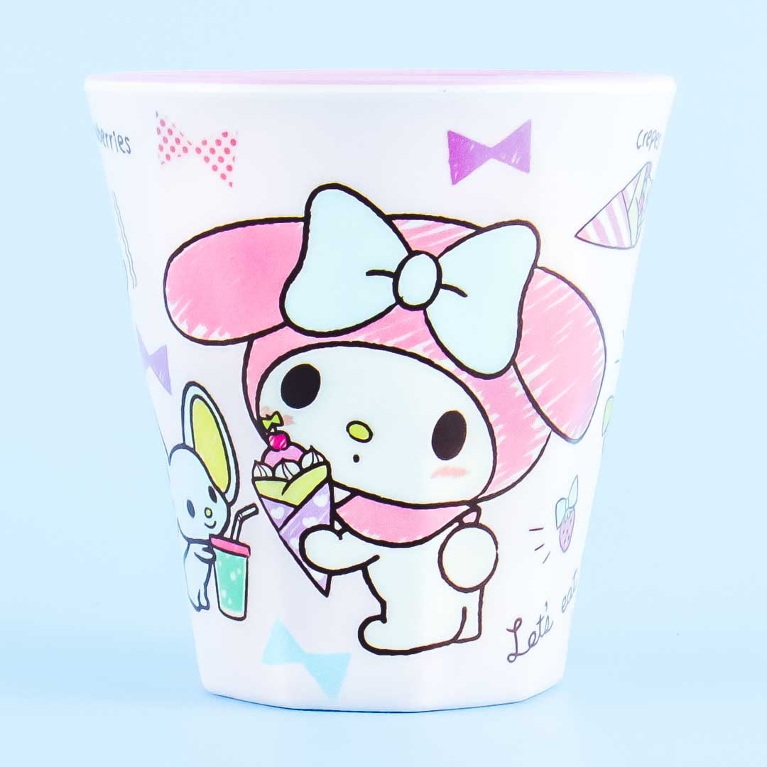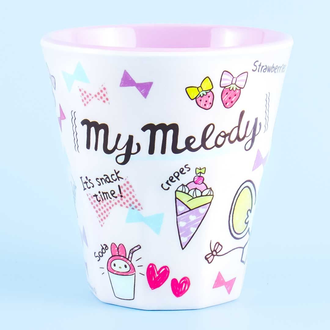 Have a drink of your favorite hot or cold beverage using this super kawaii cup! It features prints of My Melody having a few tasty treats. This cup is made of durable melamine.