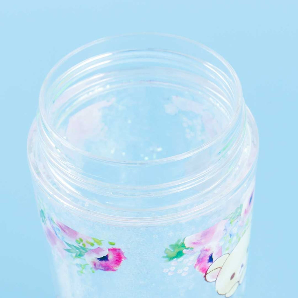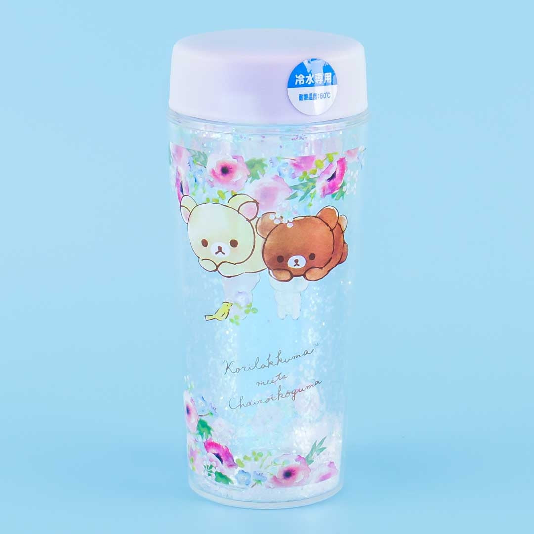 Store your favorite cold drink inside this super kawaii floral tumbler. The bottle part illustrated with Korilakkuma and Chairoikoguma has moveable glitter inside. Screw the lid to secure your beverage.