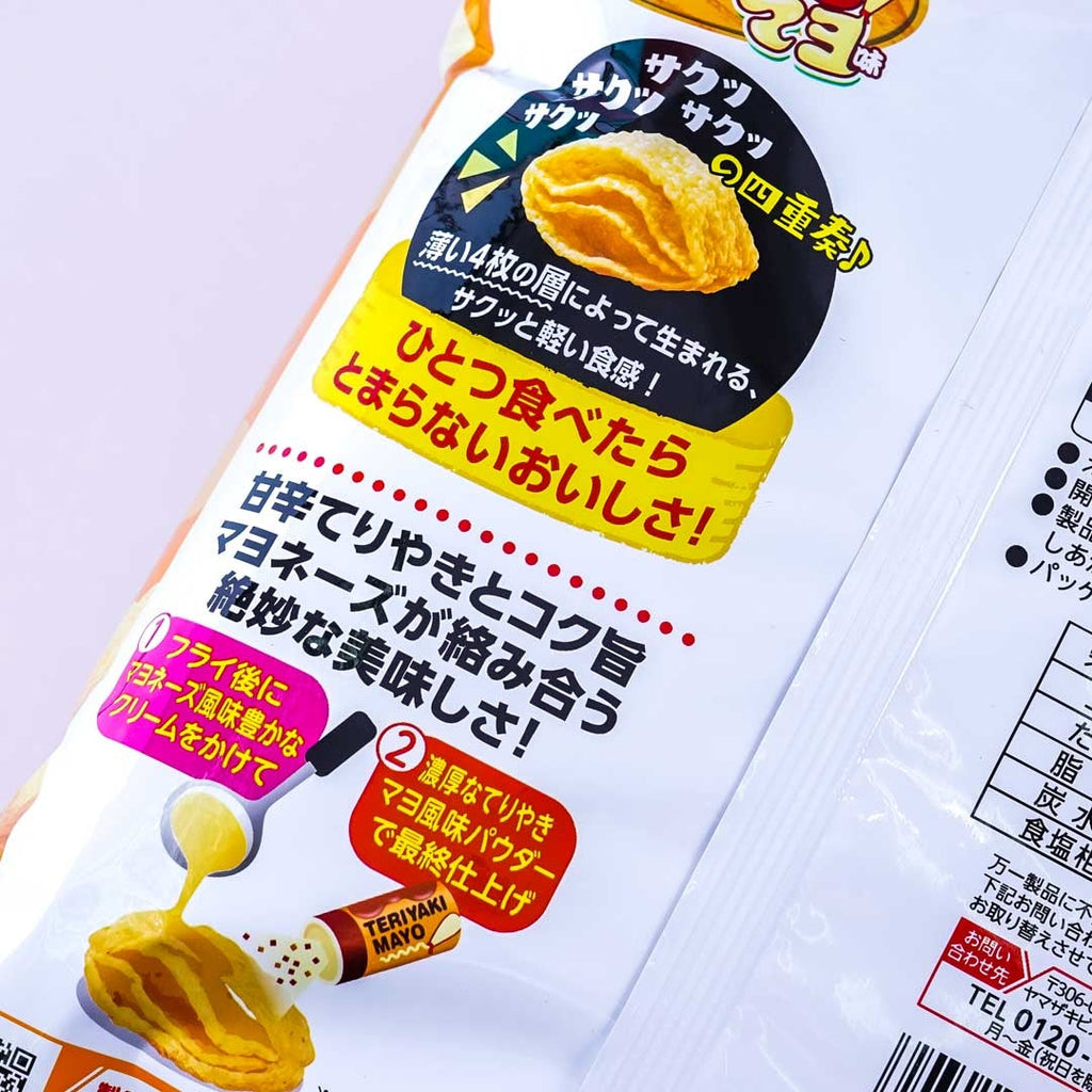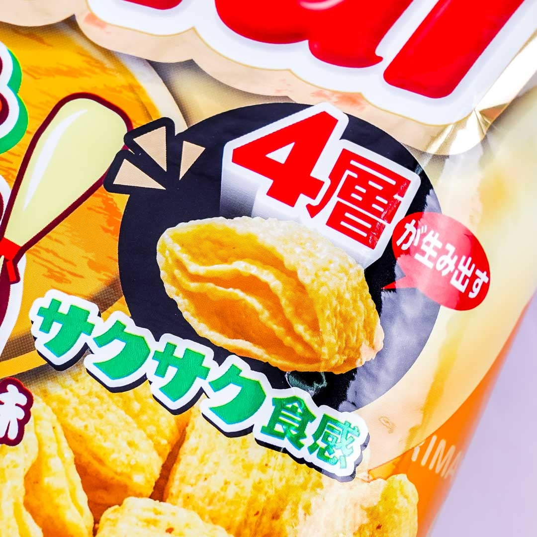 • A pack of tasty four-layered corn snacks coated in teriyaki and mayonaisse-flavored seasoning