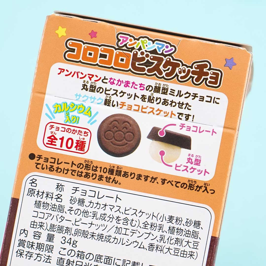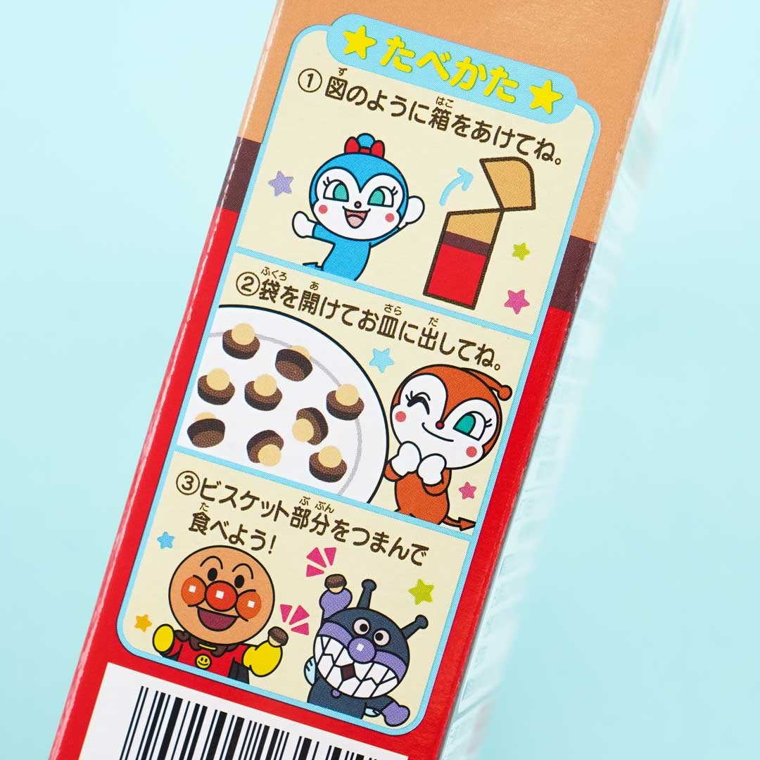 Indulge in these delicious chocolate biscuits featuring the popular animé series, “Anpanman.” There are a total of ten different character biscuit shapes and each piece is packed with calcium.