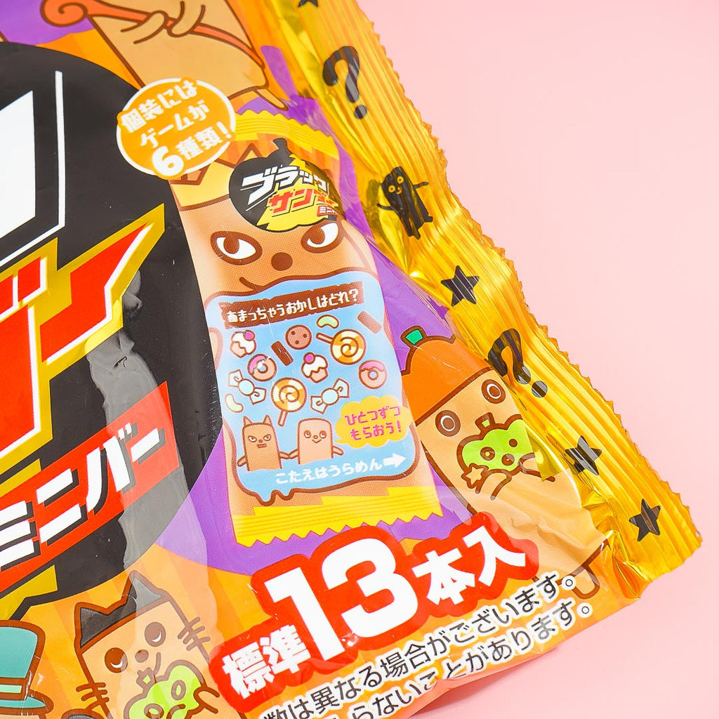 Feel that sweet thunderstorm when you bite into these cocoa-flavored cookie bars! Each piece is loaded with rice puffs and coated with yummy dark chocolate. The bars are wrapped in cute packaging with Japanese quiz questions. These are the perfect Halloween sweets you’ll definitely want to receive on Trick or Treat!