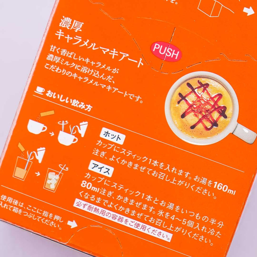 Make yourself a nice warm drink with this box of powder packets! One sachet makes a cup of fragrant caramel macchiato. Enjoy the sweet and delicious flavor of caramel when you take a sip of the macchiato.