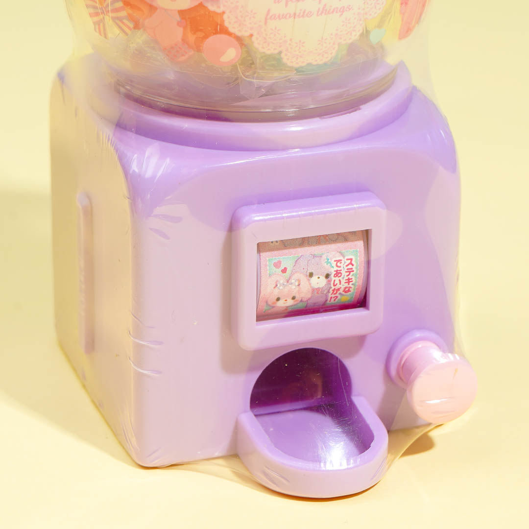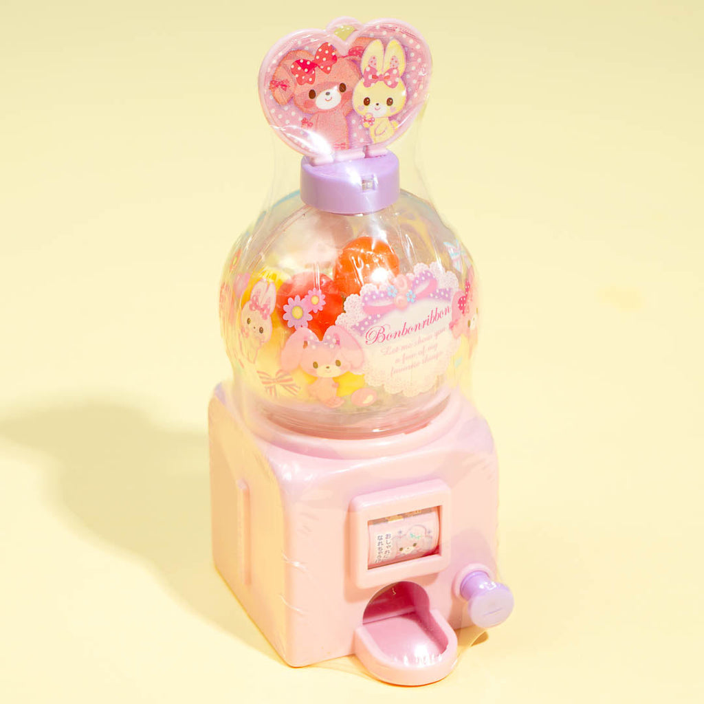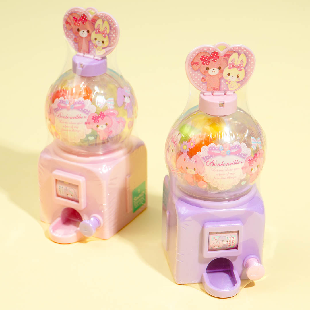Have fun playing with this gumball machine! It showcases cute prints of Bonbonribbon and dispenses colorful gumballs for you to enjoy. Press the button and watch as a gumball drops.
