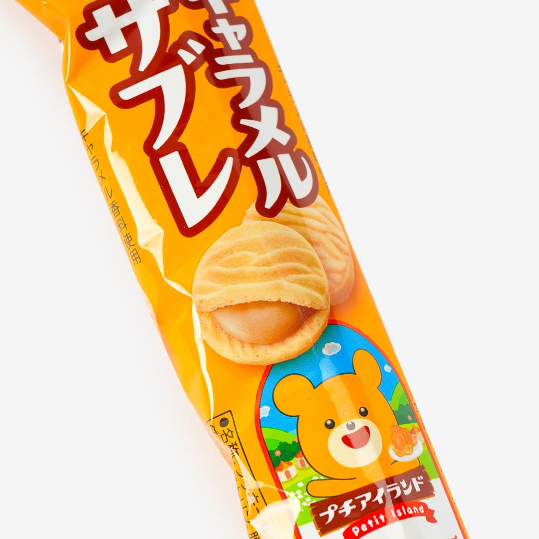 These bite-sized cookies are perfect for snacking on the go! Each crunchy piece is filled with rich caramel and butter cream.