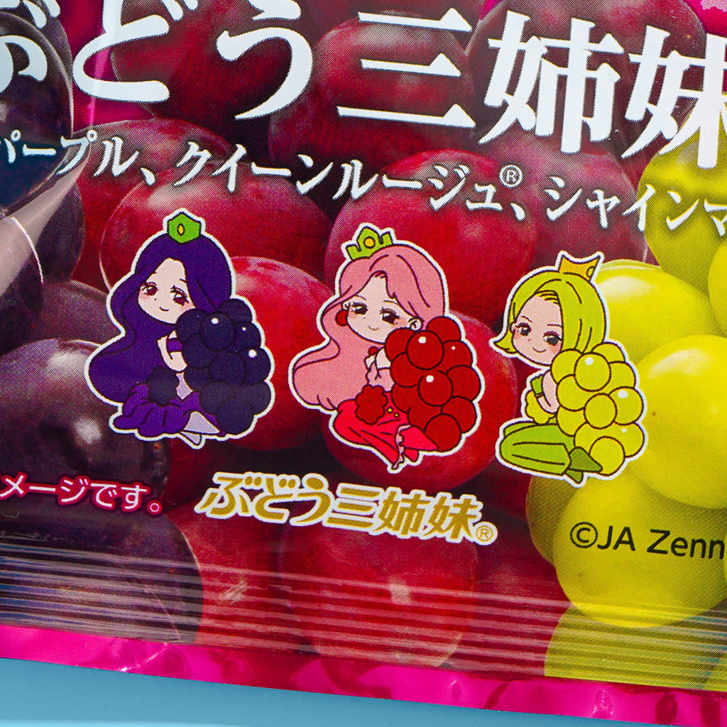 Enjoy a super juicy treat when you chew on this fettuccine-shaped gummy candy! It's made with Nagano Prefecture's popular Three Sisters grape juice—a mix of Nagano Purple, Queen Rouge, and Shine Muscat. It comes in a resealable pouch so you can keep it fresh!