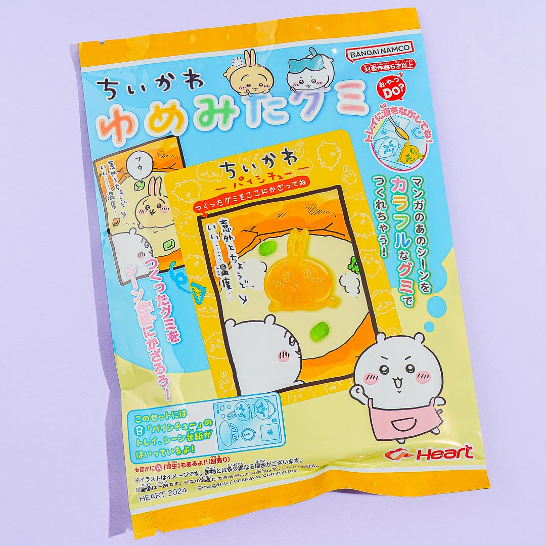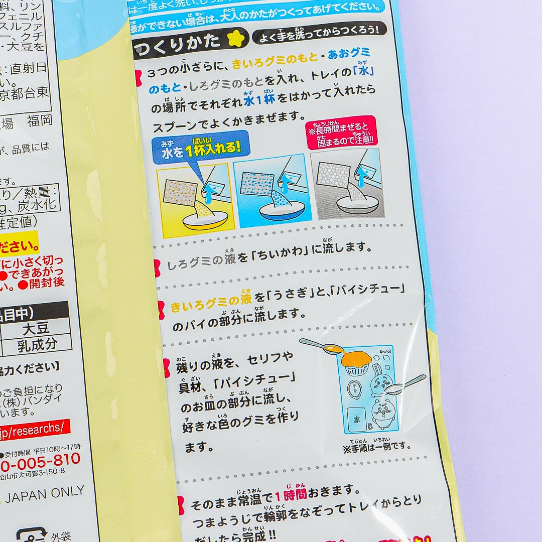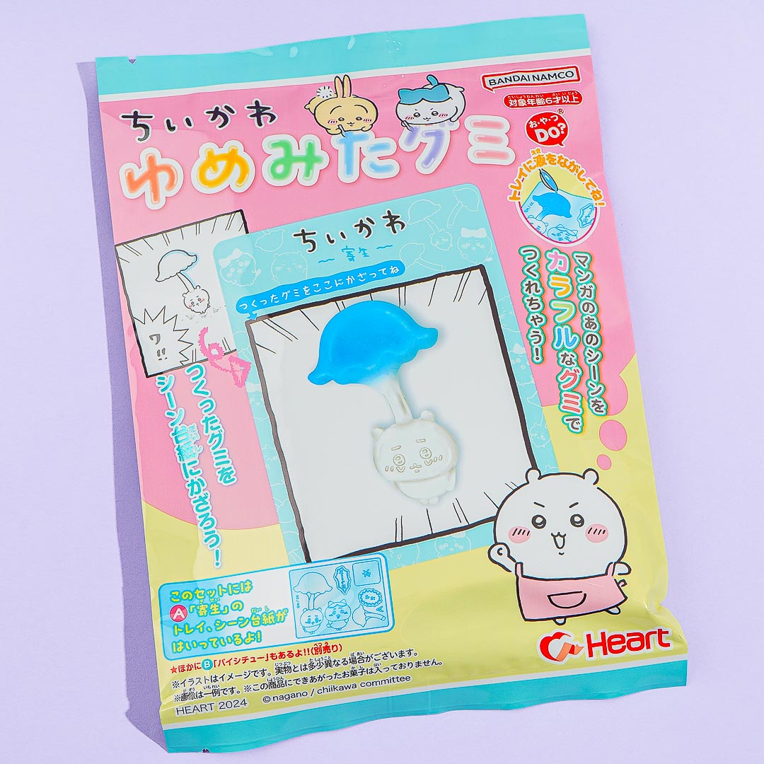 Have fun creating your own gummies using this DIY kit! It comes with three powder sachets that when combined with water and let set on the provided mold will become a Chiikawa-shaped squishy candy — without the need of the microwave.