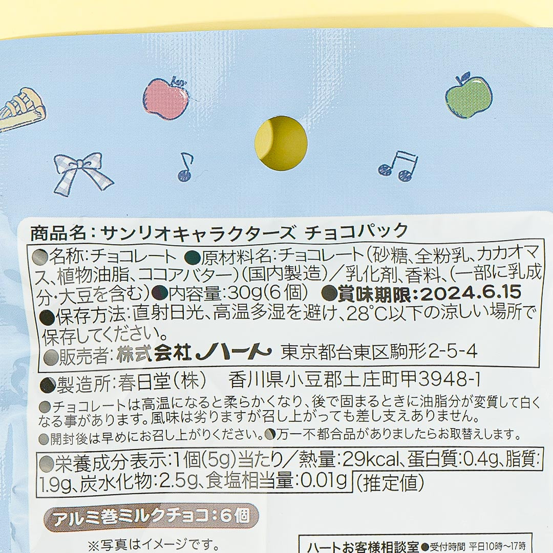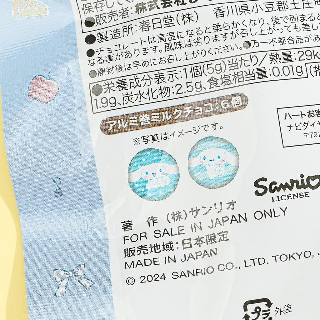 This pack of chocolate illustrated with Cinnamoroll is the perfect treat to share with your friends. Each chocolate piece is covered in aluminum showcasing prints of Cinnamoroll! Enjoy three different kinds of chocolate in the pack - milk, dark, and white chocolate.