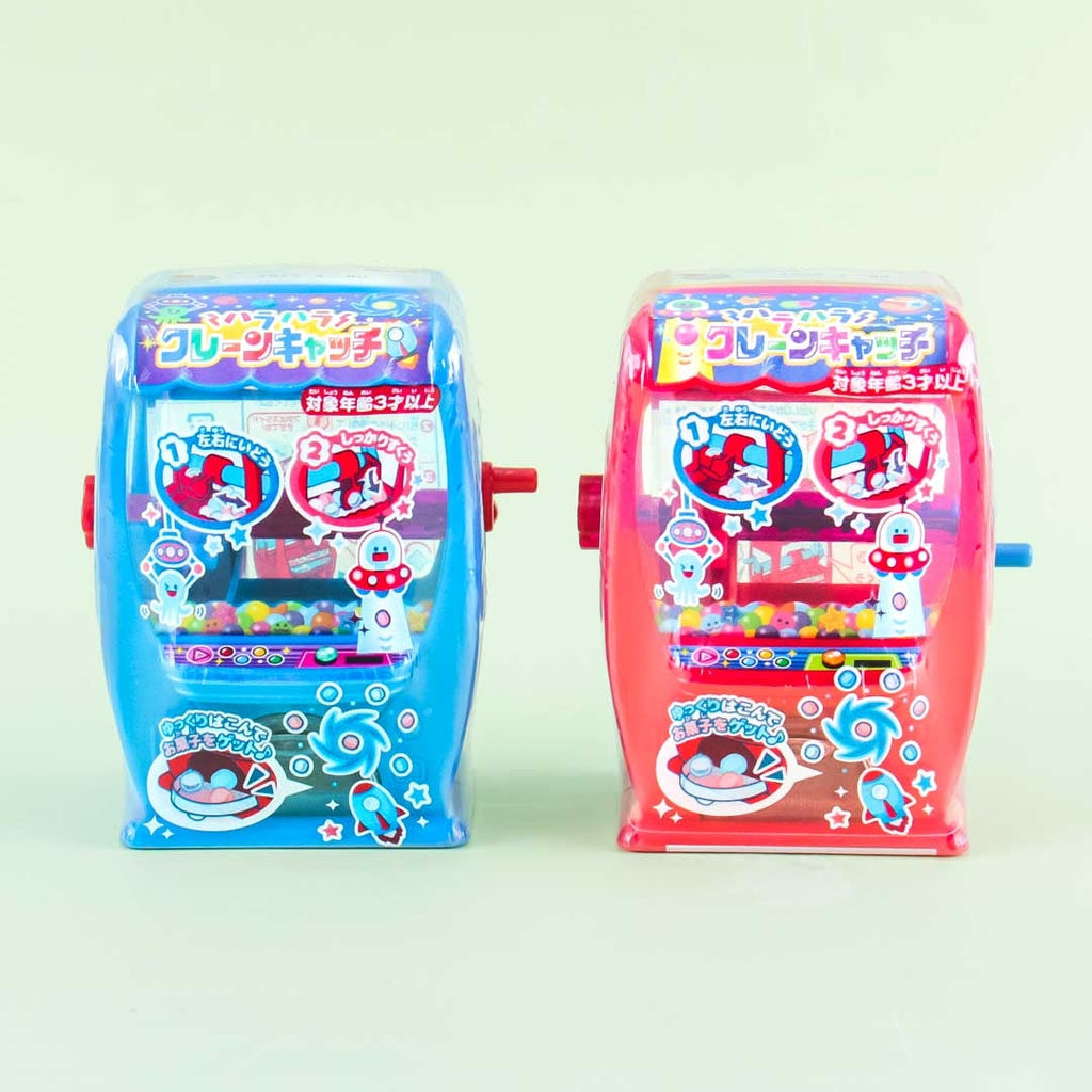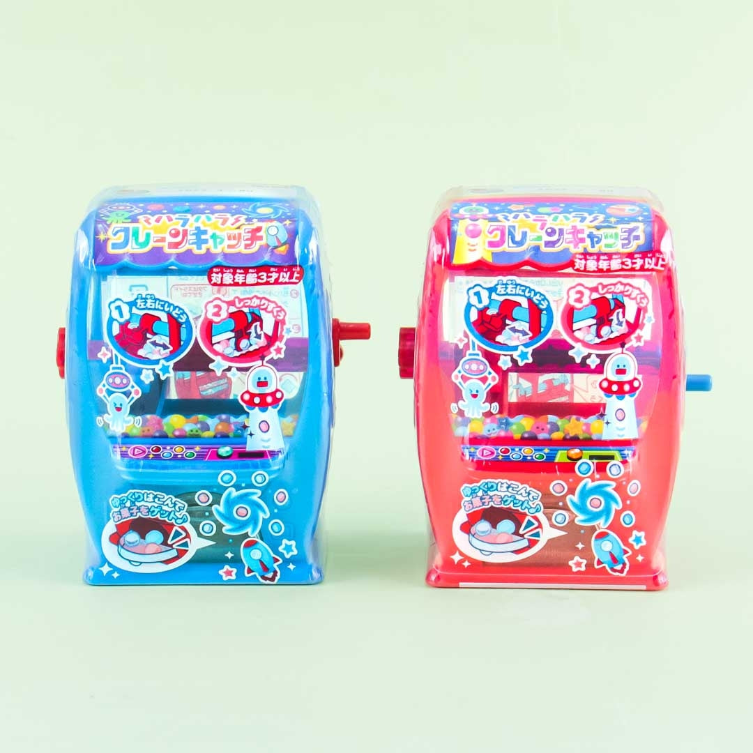 Try your best to pick up candy from this claw machine confectionery dispenser! Enjoy the ramune flavor of the brightly colored candy. Surprise yourself with a random claw machine design when you order!