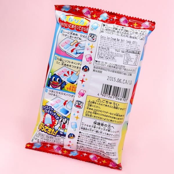 Snack time can be playtime as well! Use your imagination while creating your own sweet ice creams from soft candy cubes. The reward for your effort and patience? Delicious soda and strawberry-flavored candy ice creams! Just insert the stick into the cubes and dip the bar in sweet syrup and powder to get a creamy frosting. This ice cream bar will not give you brain freeze, so bite in!