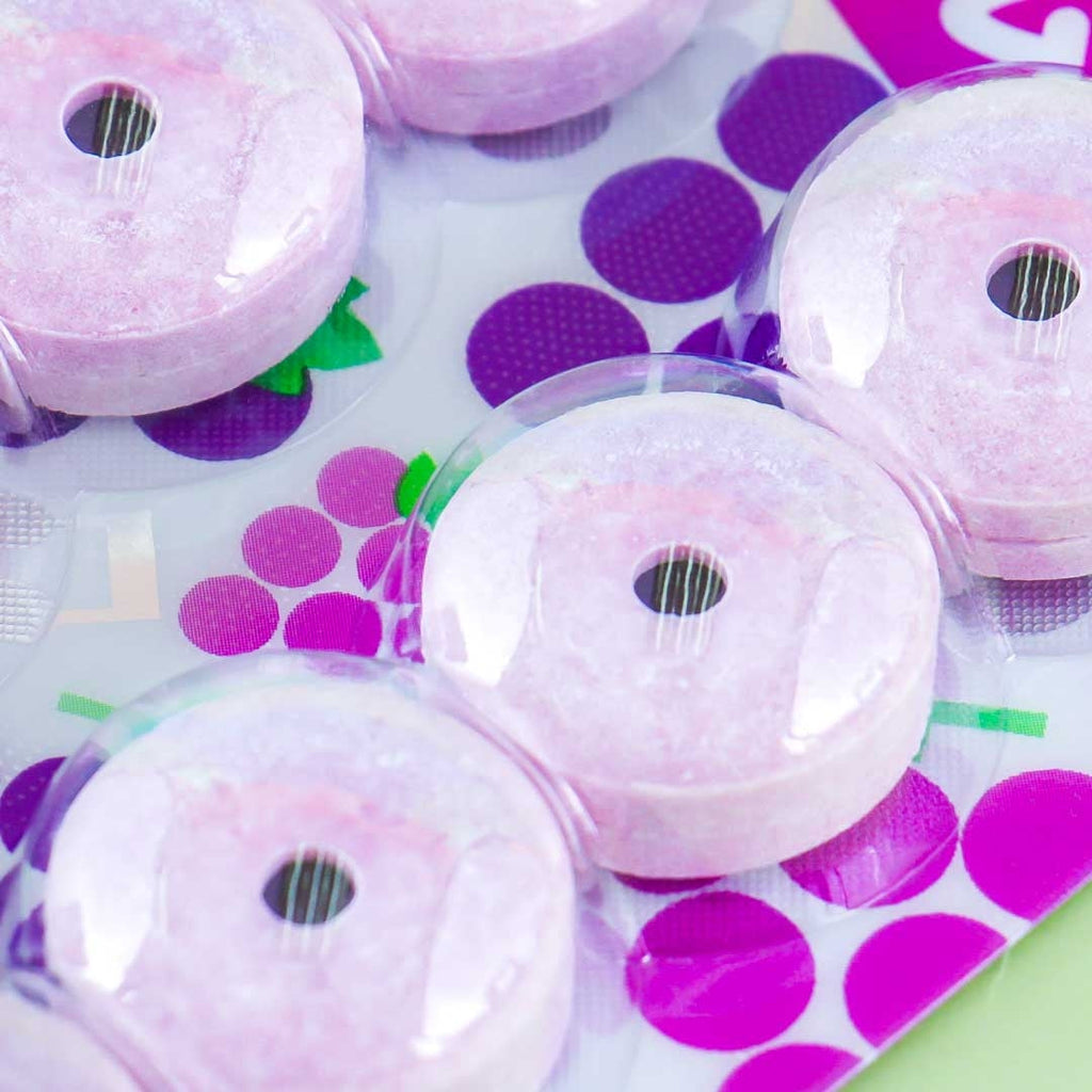 • Tasty and fun doughnut-shaped and grape flavored candies