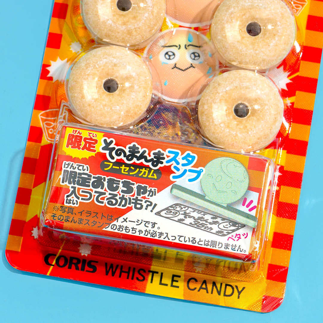 Have fun playing with this cola-flavored candy before eating it! It has a hole in the middle, which makes a whistling sound when you blow through it. Plus, the pack comes with a free toy!