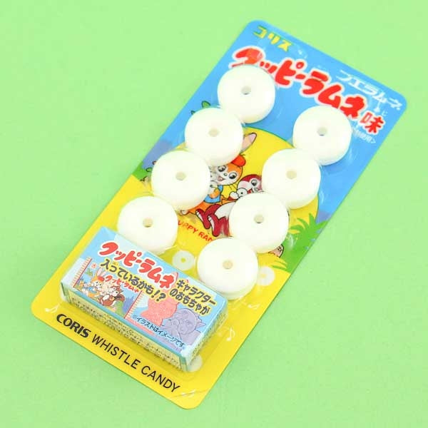 Turn your candy into music! Each pack of these Coris Whistle candies contains 8 yummy ramune soda flavored and doughnut-shaped candies that make a whistling noise when you blow through the hole in the middle! Each pack also contains a fun surprise toy. These unique and fun Japanese candies are a must-try!