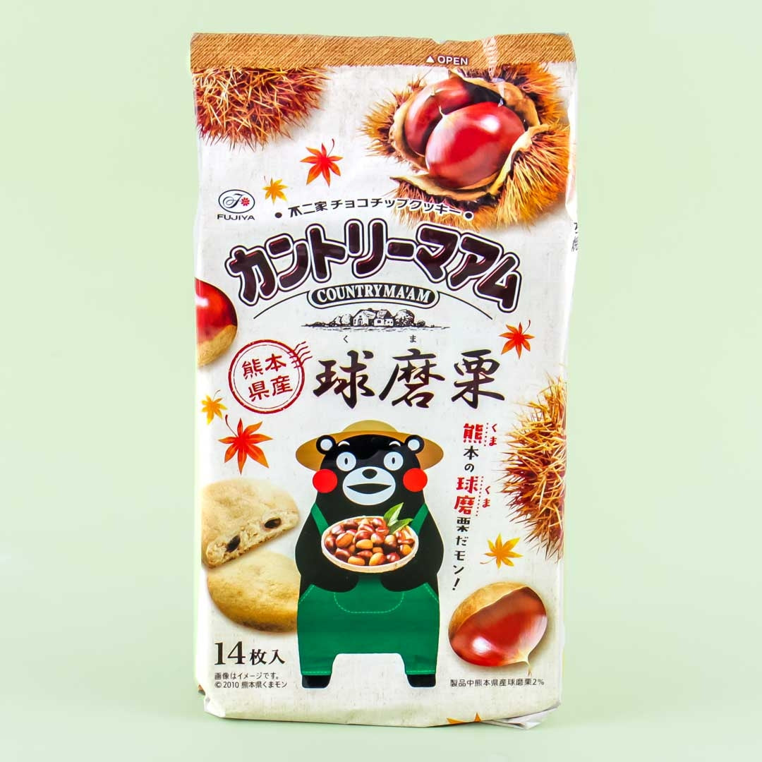 A pack of chewy choco chip cookies flavored with Kumamoto chestnuts