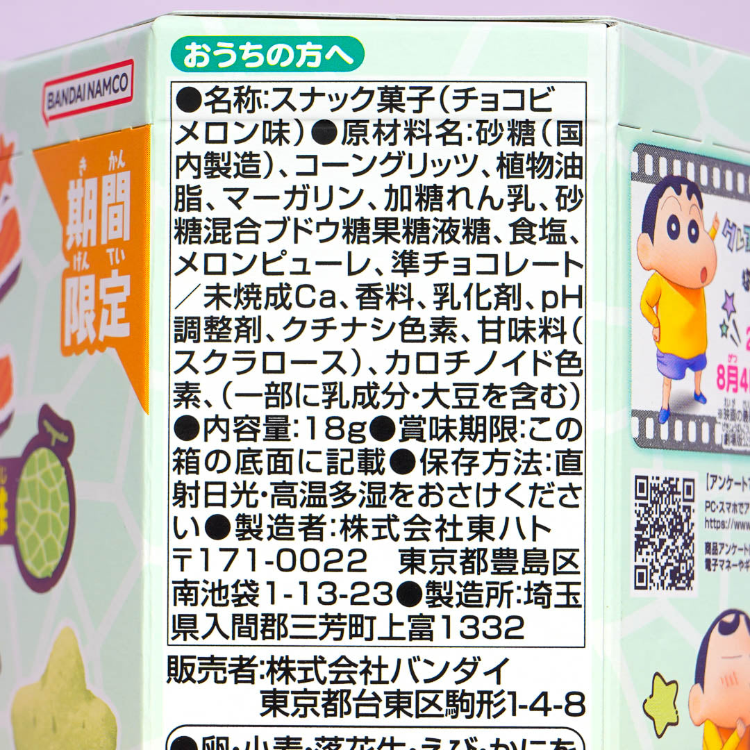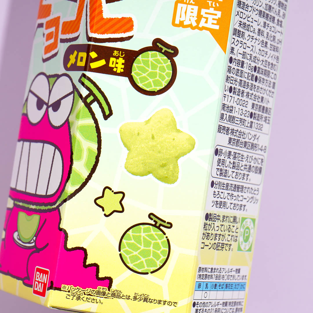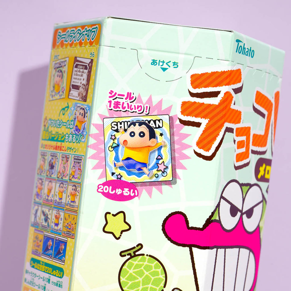 Have fun munching on this star-shaped corn puff snack! It features a milky melon flavor which is a combination of condensed milk and melon puree. This snack comes with a free sticker featuring Crayon Shin-Chan.
