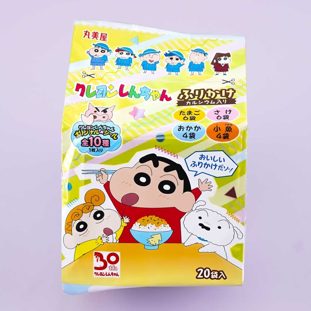 Enjoy sprinkling these small packs of furikake or Japanese all-purpose seasoning on your rice or soup! The set features the characters of the beloved animated series, “Crayon Shin-chan.” It includes mini pouches of various furikake flavors like salmon, egg, bonito, and katsuobushi or smoked skipjack tuna. Surprise yourself as you’ll receive a free random character sticker out of ten possible designs when you order!